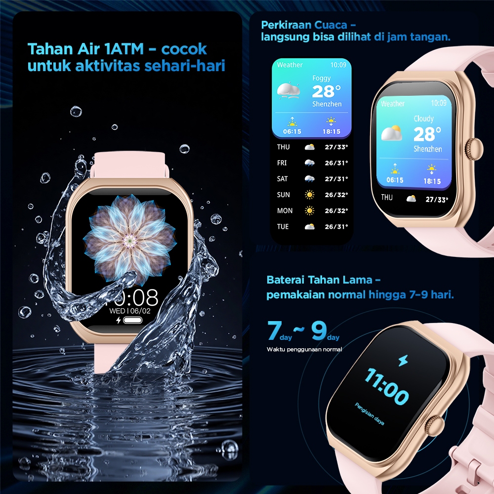 Bozlun B59 2025 NEW Smart Watch | 1 ATM Waterproof | 2.01-inch Curved IPS Screen | Running Pace | Bluetooth Call | Custo