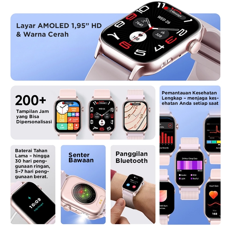 BOZLUN B58 Smartwatch AMOLED 1.93" IP68 Tahan Air Jam Tangan Wanita Smart Watch Panggilan Bluetooth Wallpaper Kustom Sen