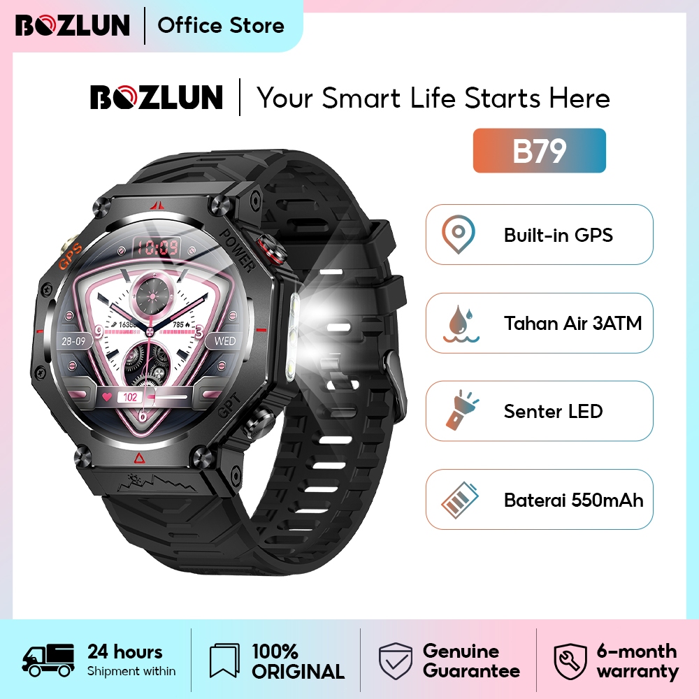 Smartwatch BOZLUN B79 GPS Jam Tangan Pintar 3ATM Anti Air dengan Senter LED Baterai 550mAh 100+ e Olahraga Pria Wanit