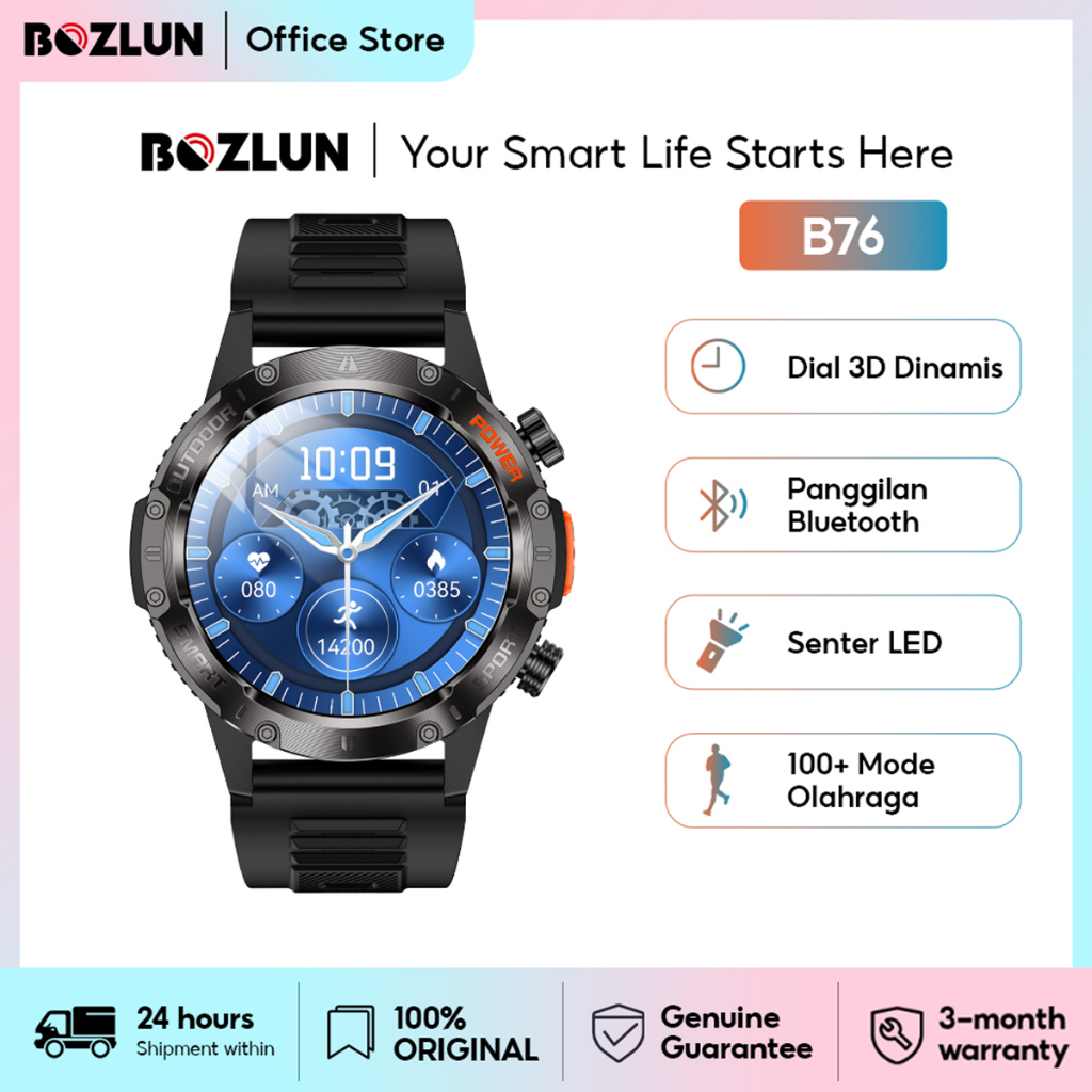 Bozlun B76 Smartwatch 1.46" HD Layar 3D Dinamis | Bluetooth Call | Pria & Wanita Jam Tangan Pintar | Senter LED
