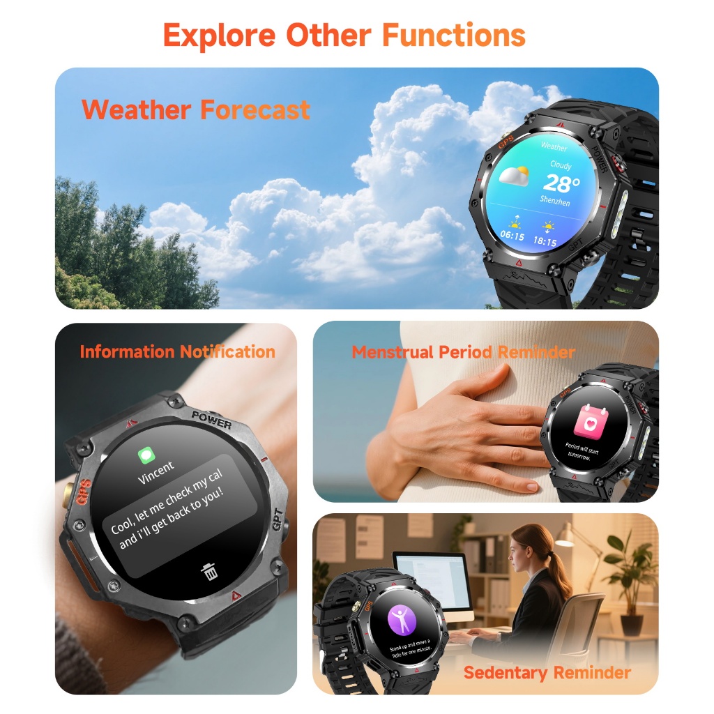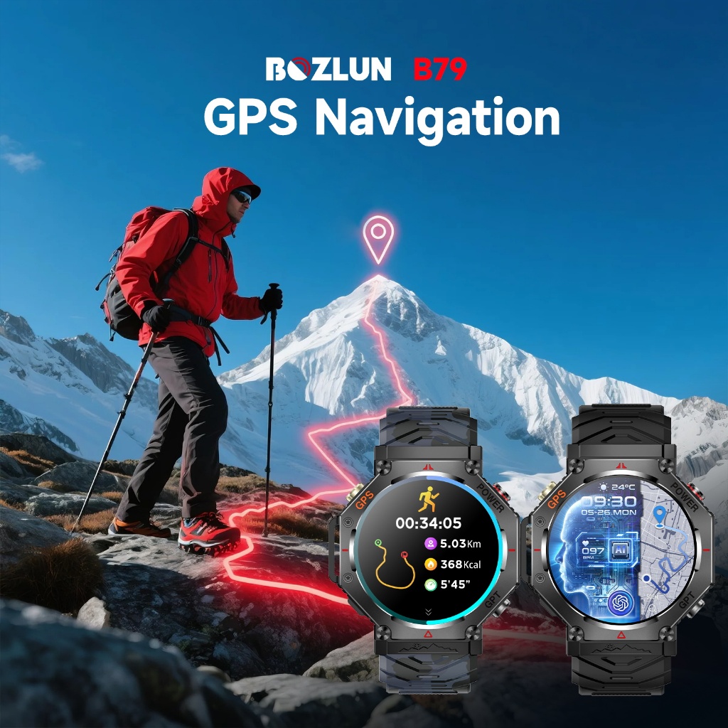 Smartwatch BOZLUN B79 GPS Jam Tangan Pintar 3ATM Anti Air dengan Senter LED Baterai 550mAh 100+ e Olahraga Pria Wanit