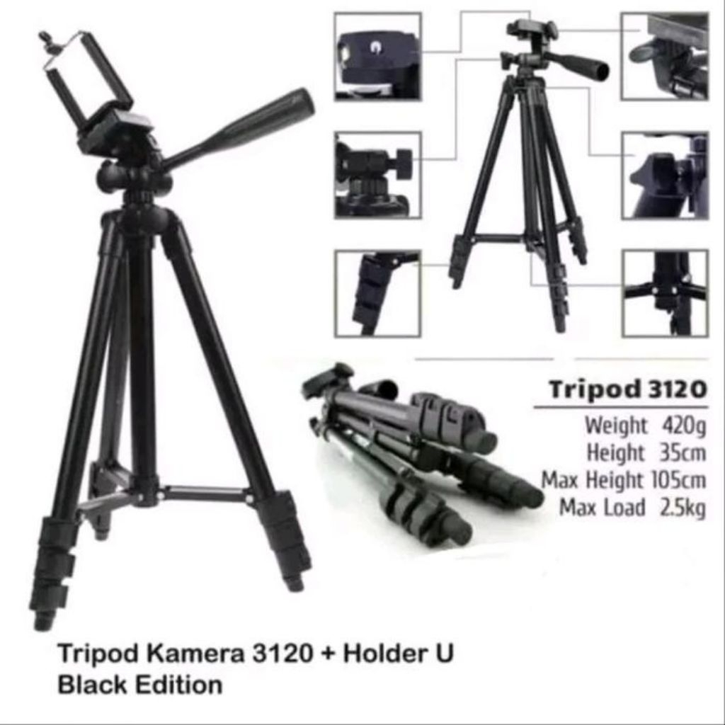 Tripod Weifeng - 3120 Tripod Camera Hp Mobile Universal Free Holder U + Tas Tripod - Hitam