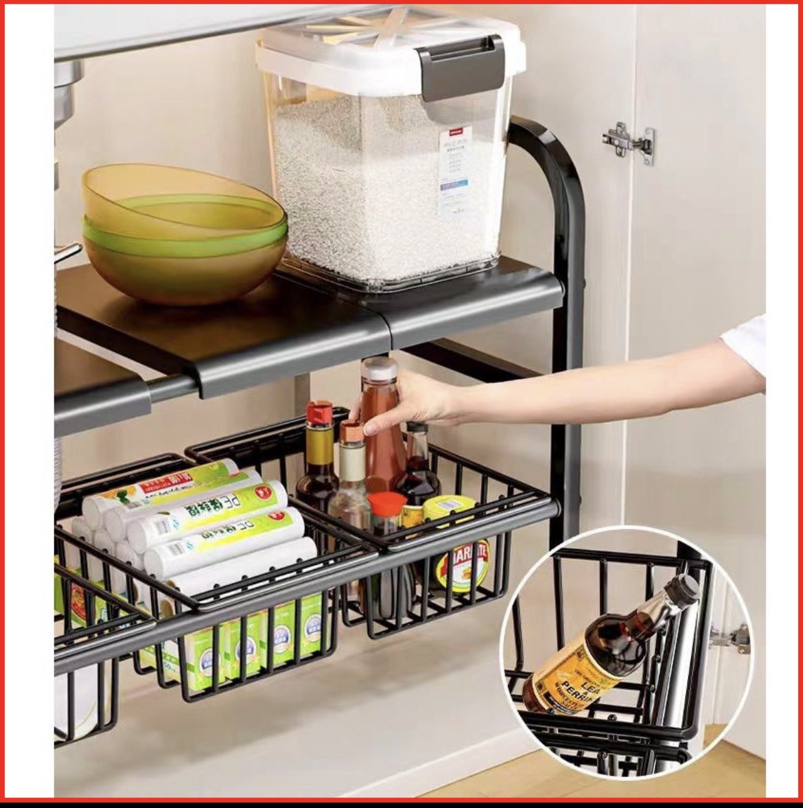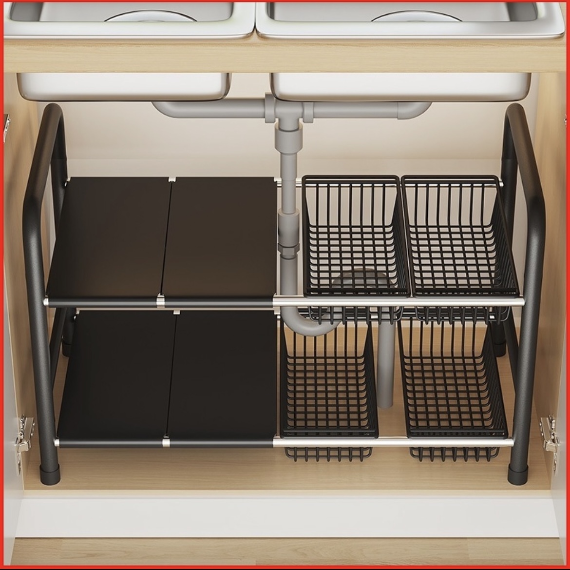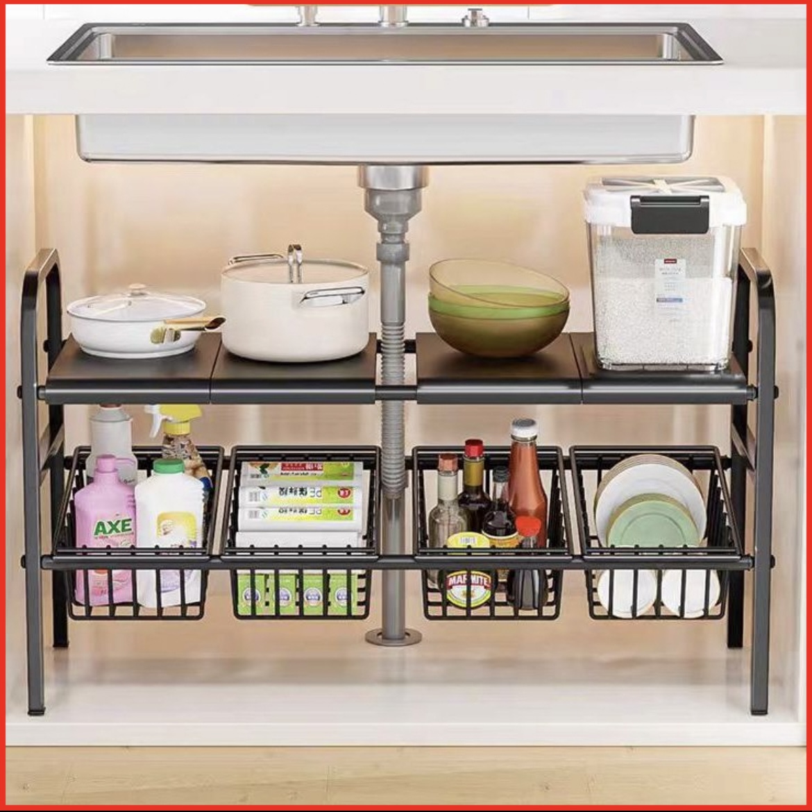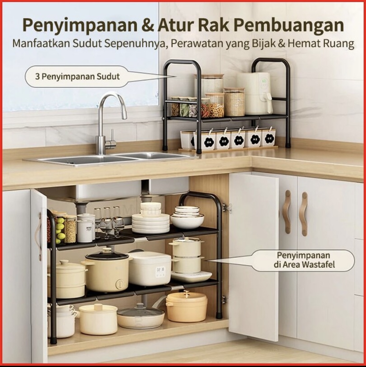 RAK PANCI SUSUN DAPUR DAPAT DI TARIK STAINLESS STEEL RAK SERBAGUNA RAK PANCI WASTAFEL DAPUR DI BAWAH