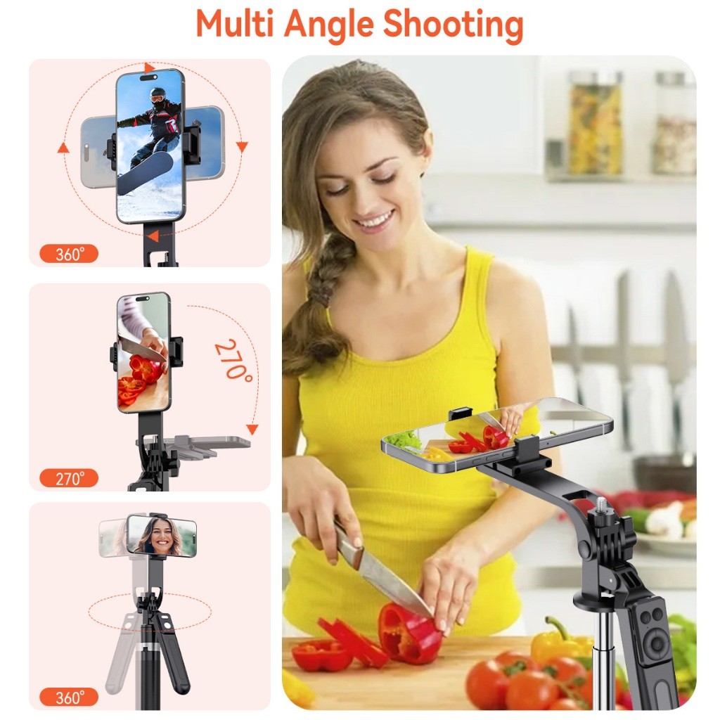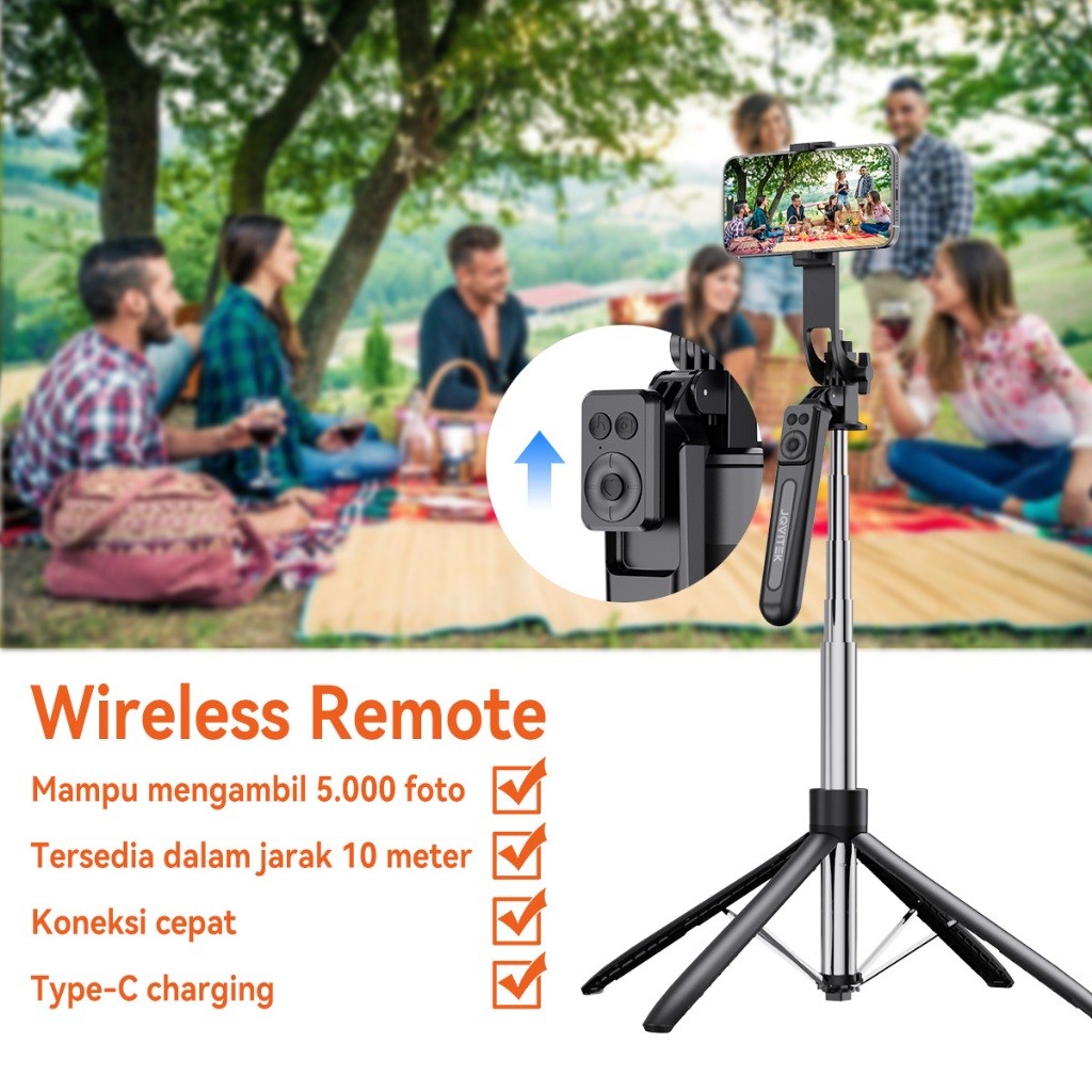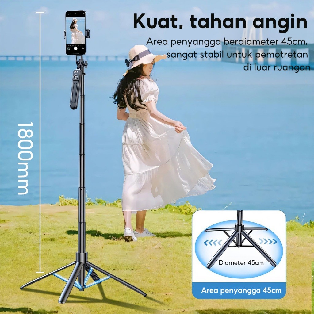 Jqvitek TR16S Tripod 4 In 1 Bluetooth Tongsis Selfie Stick Fill Light 1.8M Tongsis Tripod Remote Tongsis Gimbal Untuk HP