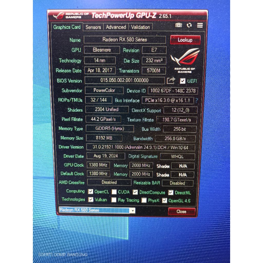 VGA RX580 8GB 256bit DDR5 Red Devil Dual Fan
