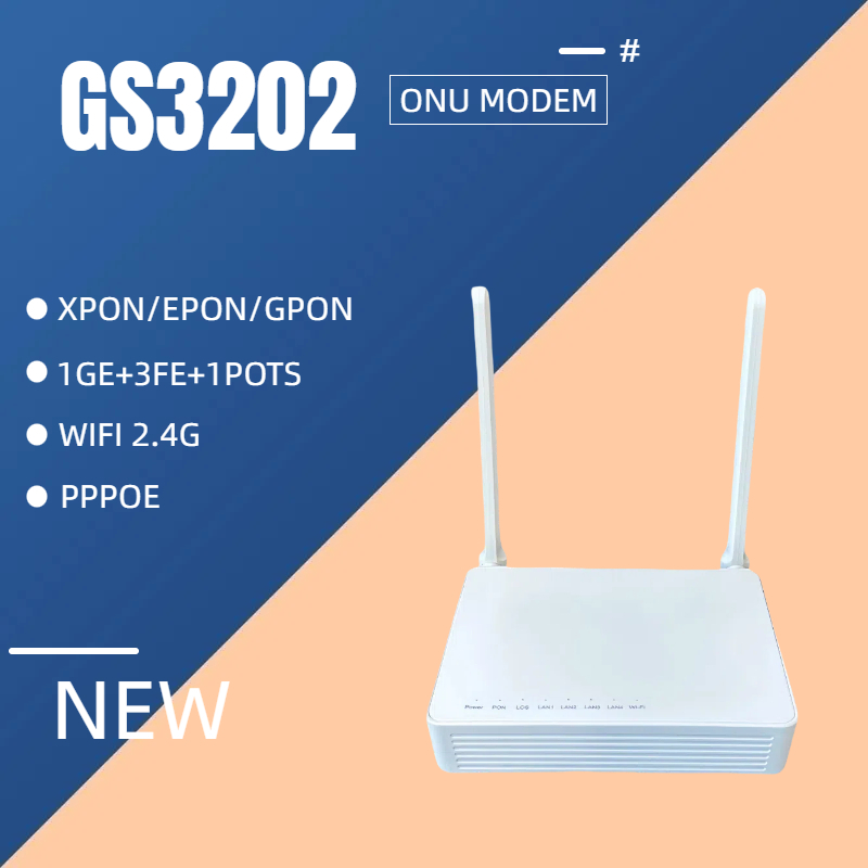 【BARU ORI】ONT MODEM GS3202 4 PORT + WiFi 2.4GHz & VOIP | 1 GIGABIT + 3 LAN 100Mbps | SUPPORT GPON/EPON/XPON | FIRMWARE ENGLISH