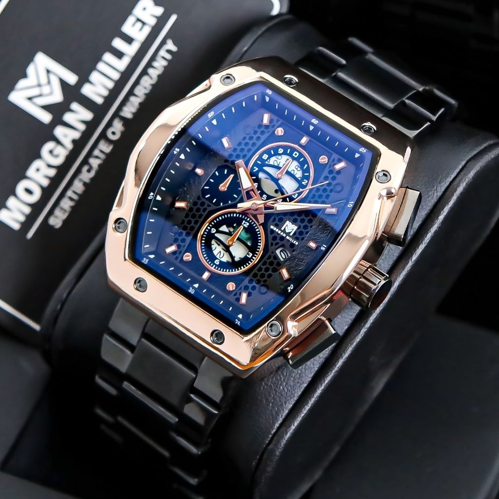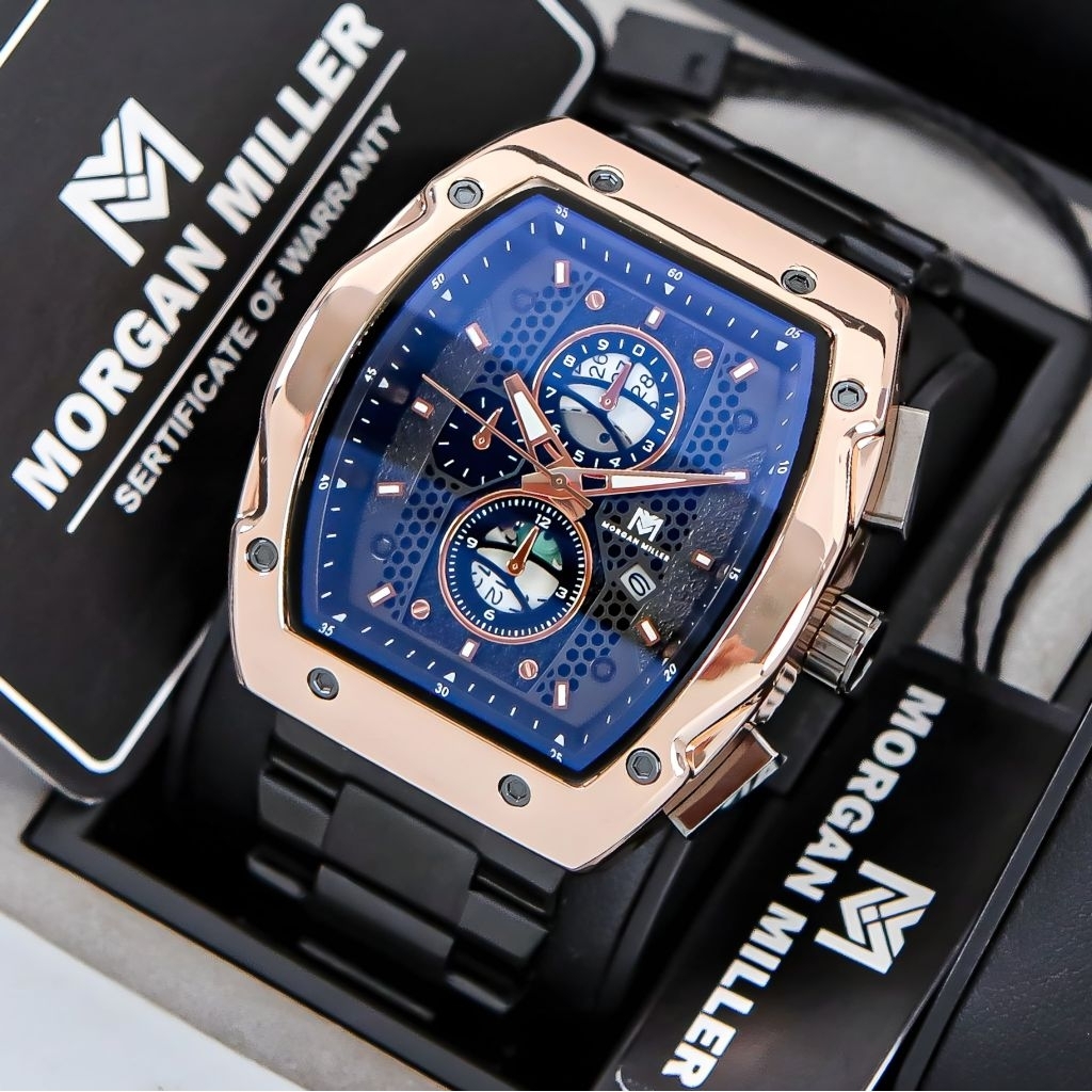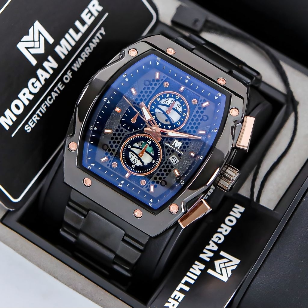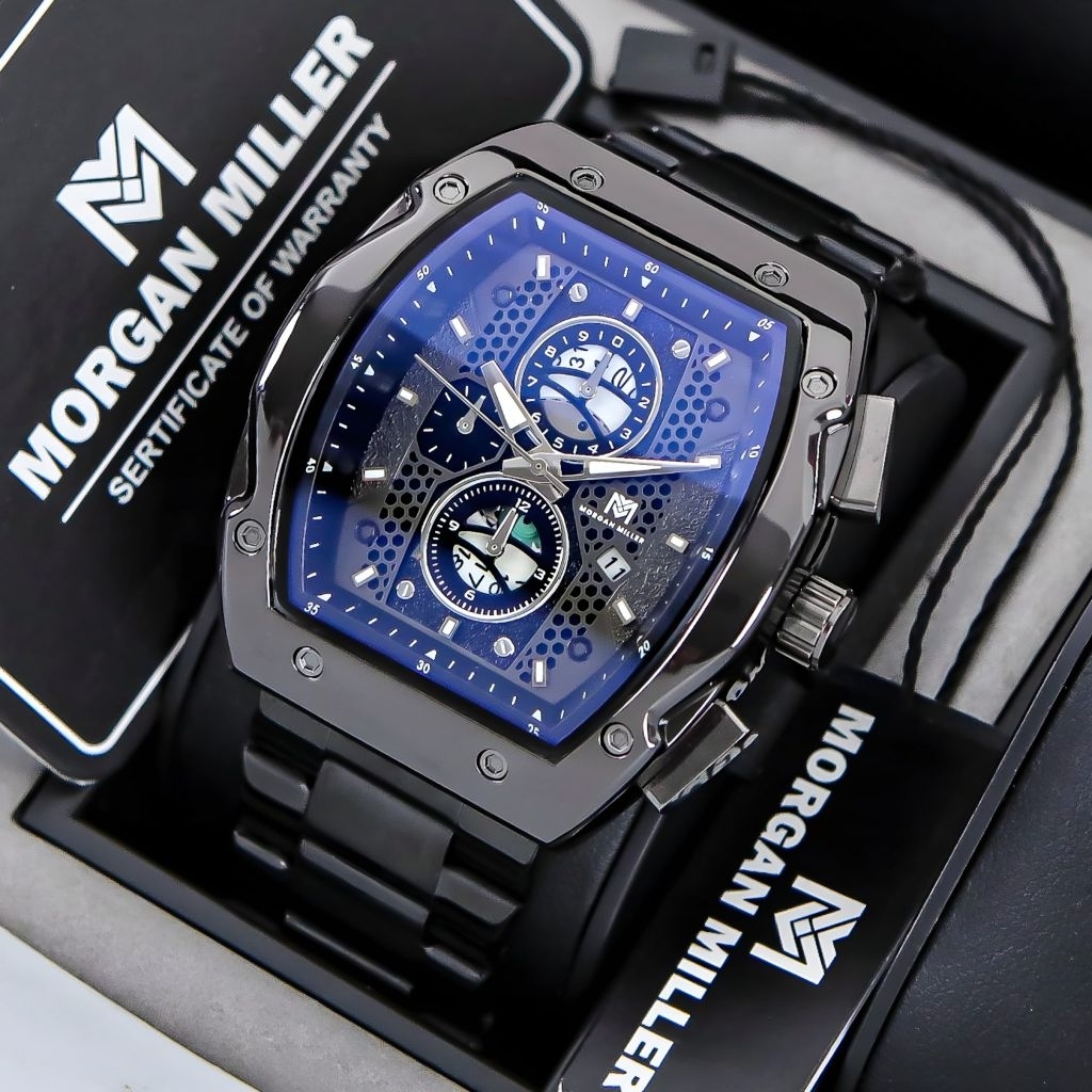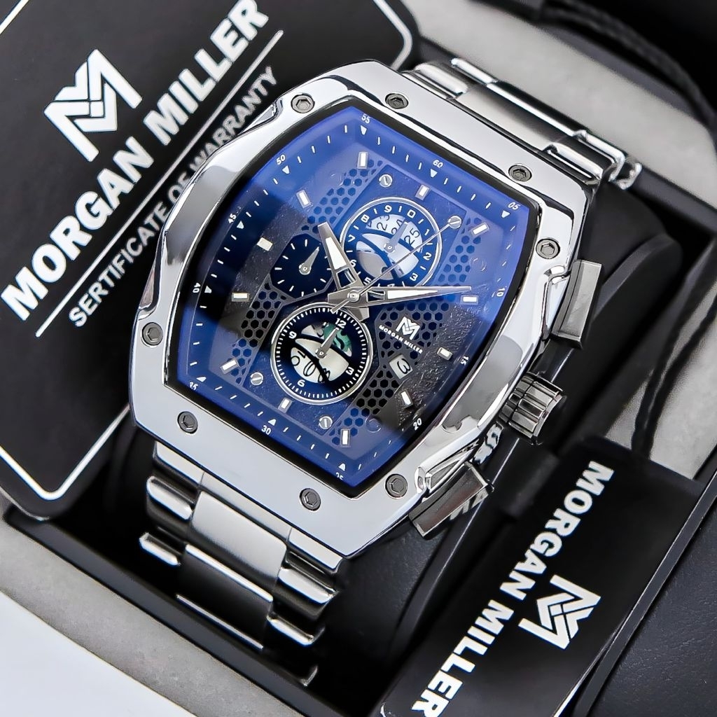 Morgan Miller MM88 Jam Tangan Pria Original Rantai Stanliess Kaca Blue Safir QuartzTanggal Aktif