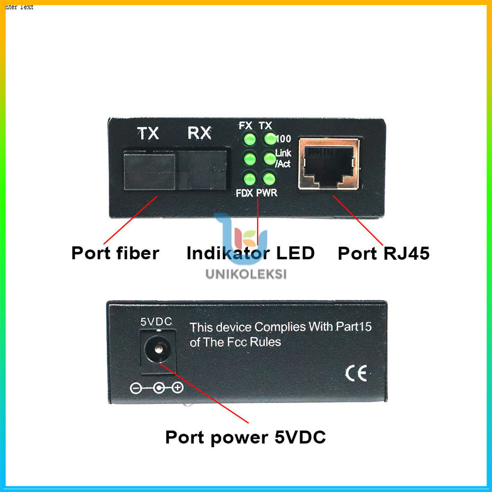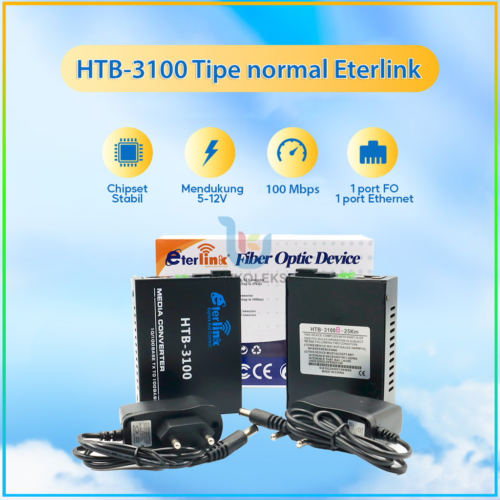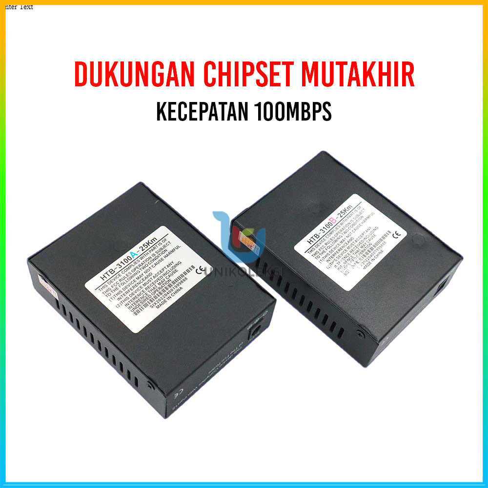 Sepasang HTB-3100 Fiber Optic Media Konverter Single Mode dengan 5V 2A EU Adaptor