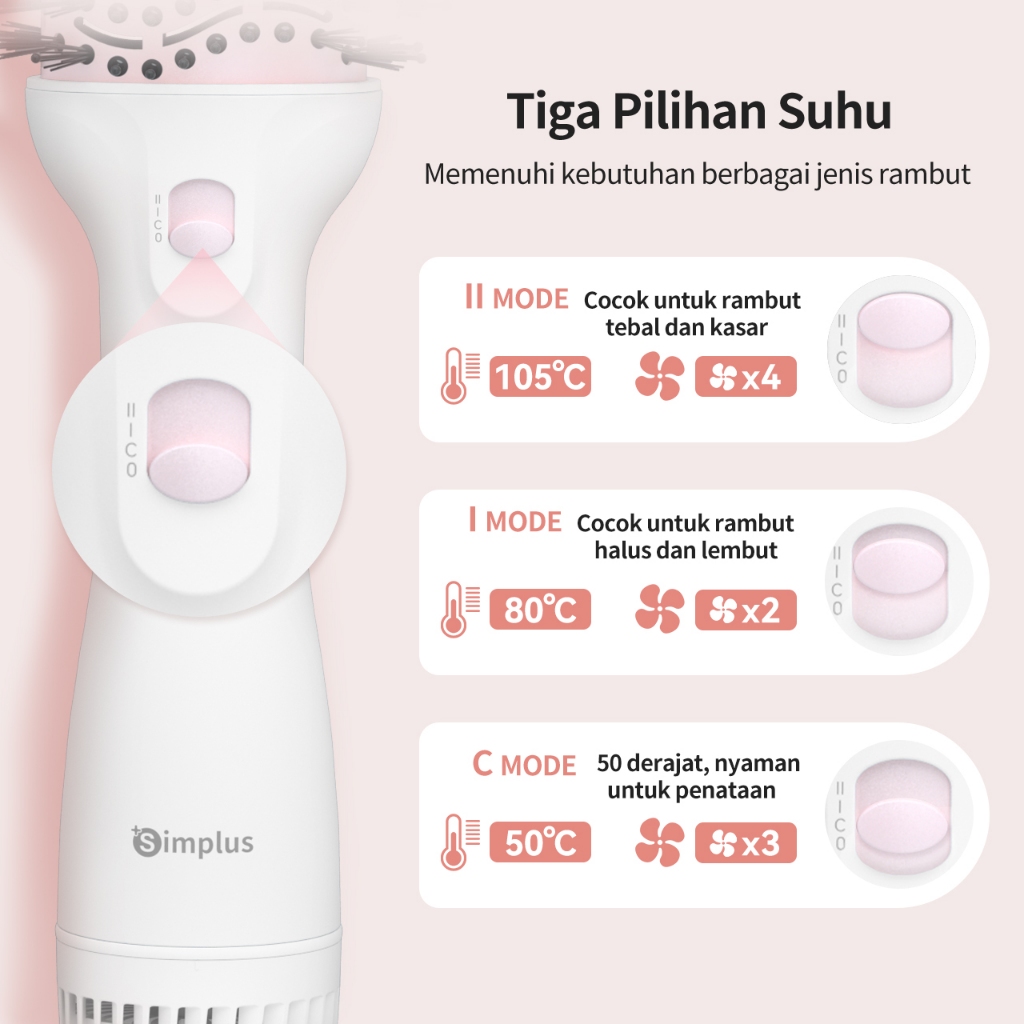 Simplus Pink Hair dryer Sisir penata gaya 4in1 Penggunaan basah dan kering