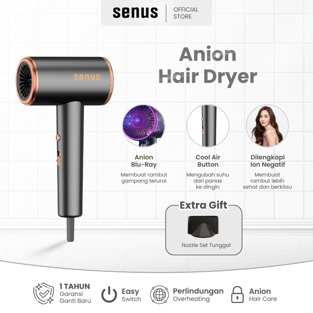 Senus Hair Dryer Pengering Rambut Anion Salon Haircare hot wind Ionik 850W