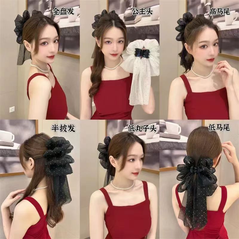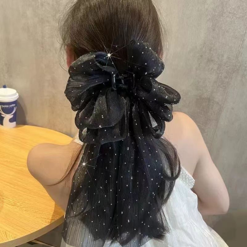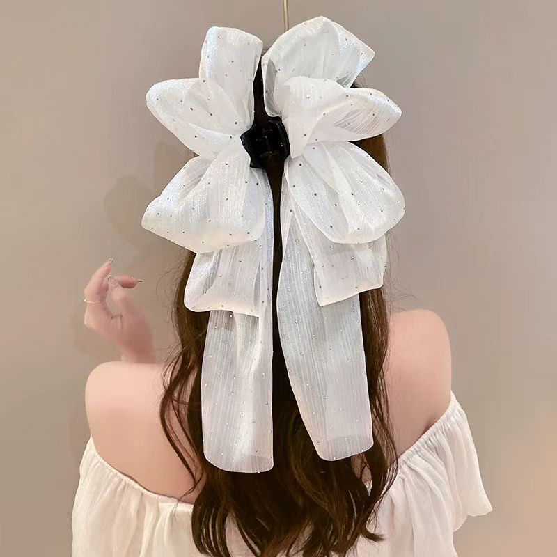 (HelloGir)F502 Jepit Wanita Hair Claw Model Pita Panjang Motif Permata Bahan Sifon Terbaru