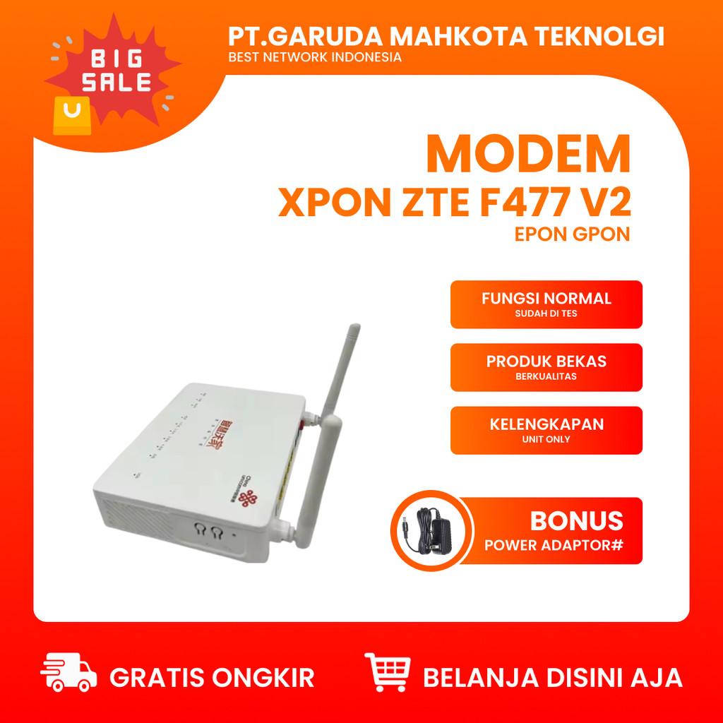 MODEM ONT ZTE F477 V2 EPON WIFI KONDISI BERSIH-EPON ZTE ONU F477-GRATIS ADAPTOR-TERMURAH