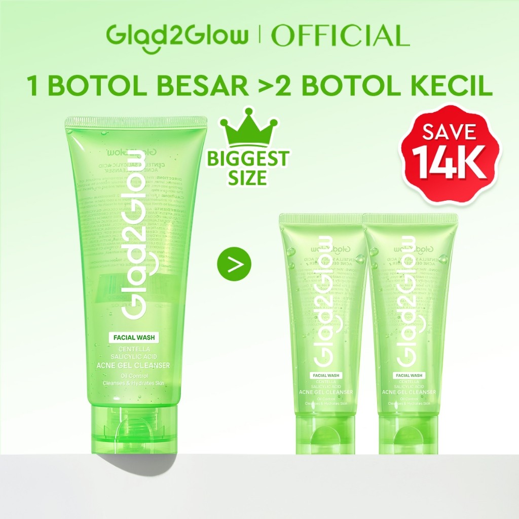 Glad2Glow Acne Gel Cleanser 150ml – Centella + Salicylic Acid Facial Wash Anti Acne