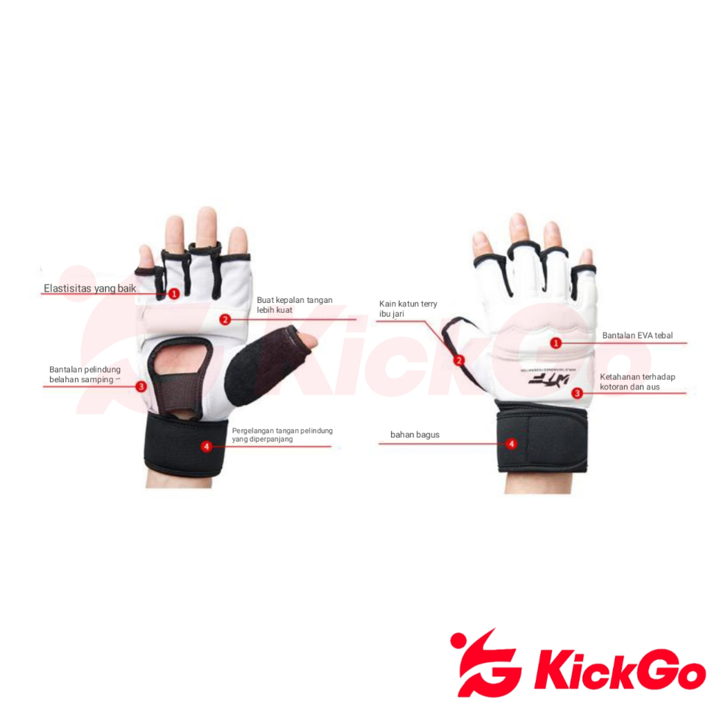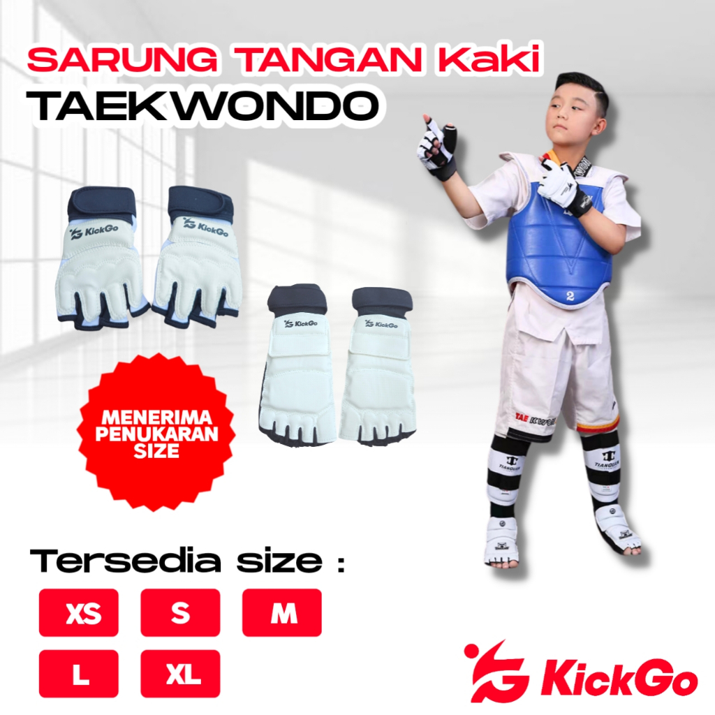 KickGo Sarung Tangan Kaki Taekwondo Pelindung Olahraga Beladiri Anak Dewasa Hand And Foot Gloves Protector Size XS S M L