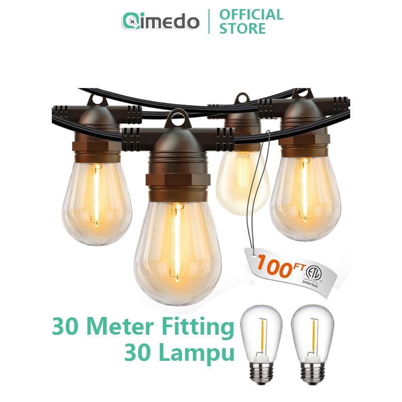 QIMEDO 30 Lampu Led 30 Meter Kabel Fitting Tahan Air Kafe Bola Komplit Lampu