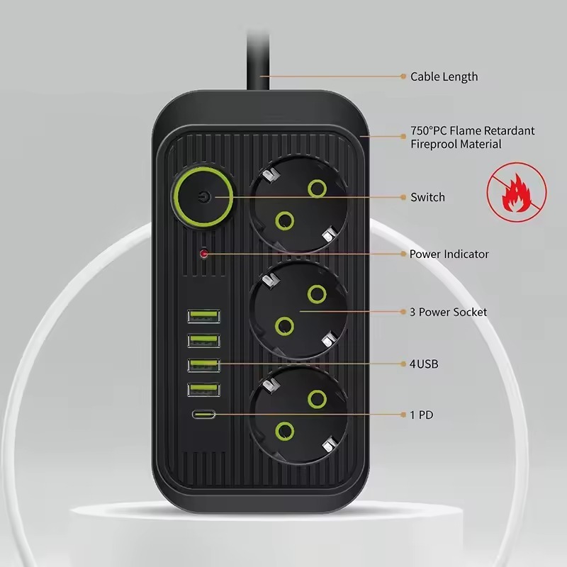 3 & 6 Lubang Stop Kontak Colokan Kabel Listrik Stopkontak Kabel Sambungan Kabel Extension USB Port