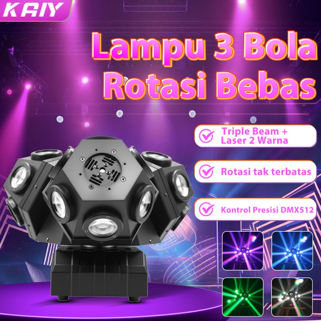 【READY】KAIY Moving Head 3 lampu sorot 220W RGBW lampu led -lampu disko- lampu panggung DMX512 Wireless Remote Garansi