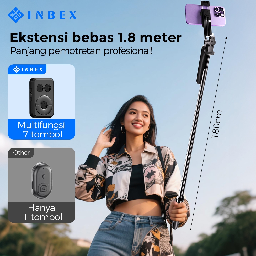 INBEX QT175 6 Key Remote Bluetooth Tongkat Selfie 180CM 4 Kaki Tripod Multifungsi Braket Tongkat Menembak Portabel Perja