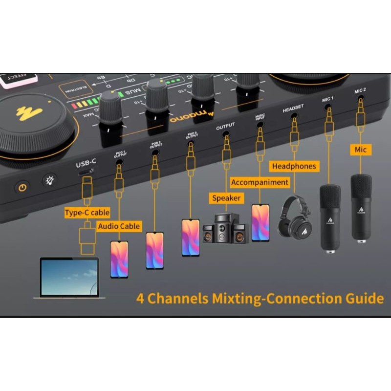 MAONO AM200 Soundcard Audio Interface Podcast Live Streaming Recording Karaoke PC Laptop Smartphone