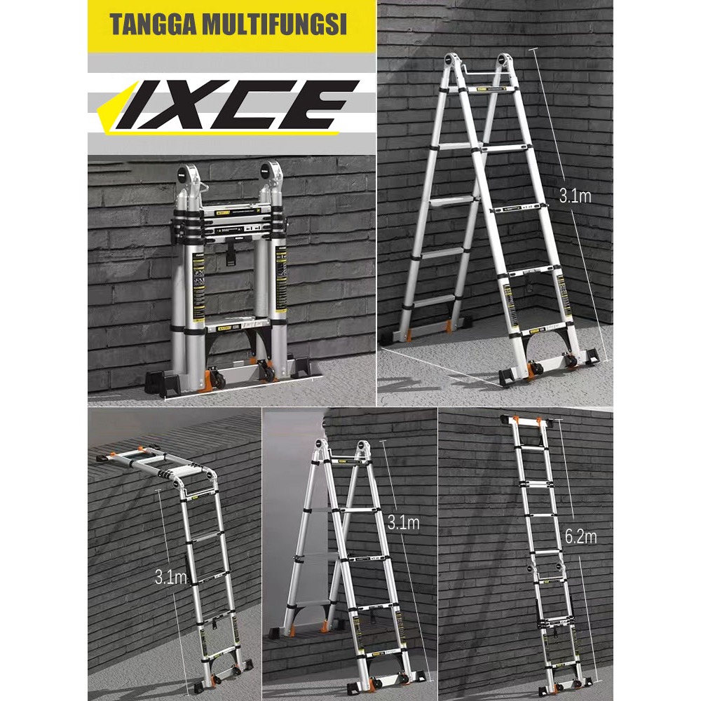IXCE Teleskopik Double Tangga Lipat Aluminium Multifungsi Teleskopik 5/6.2/8M untuk Rumah & Kantor