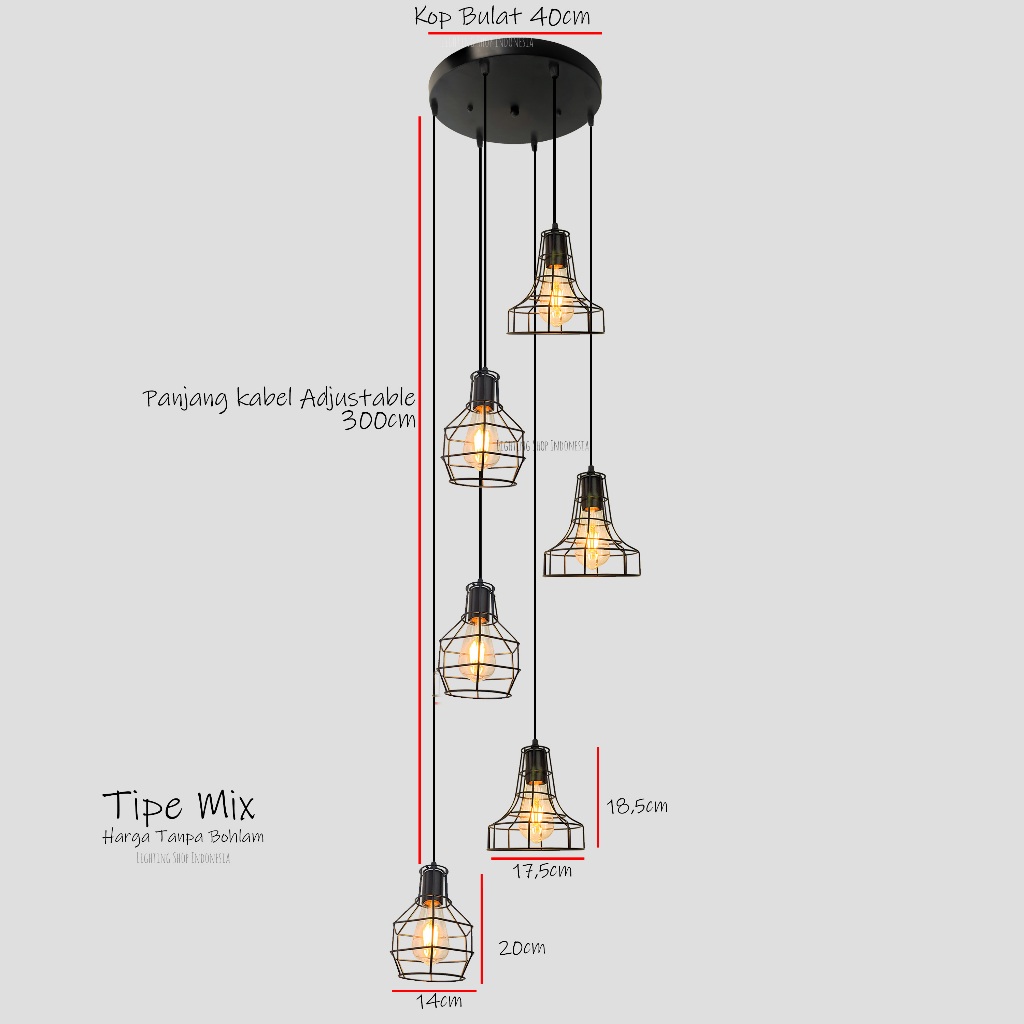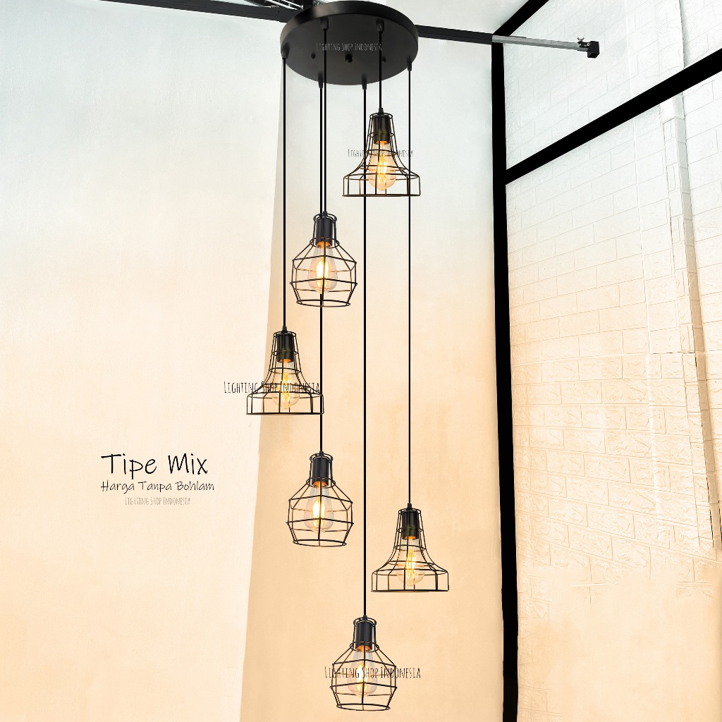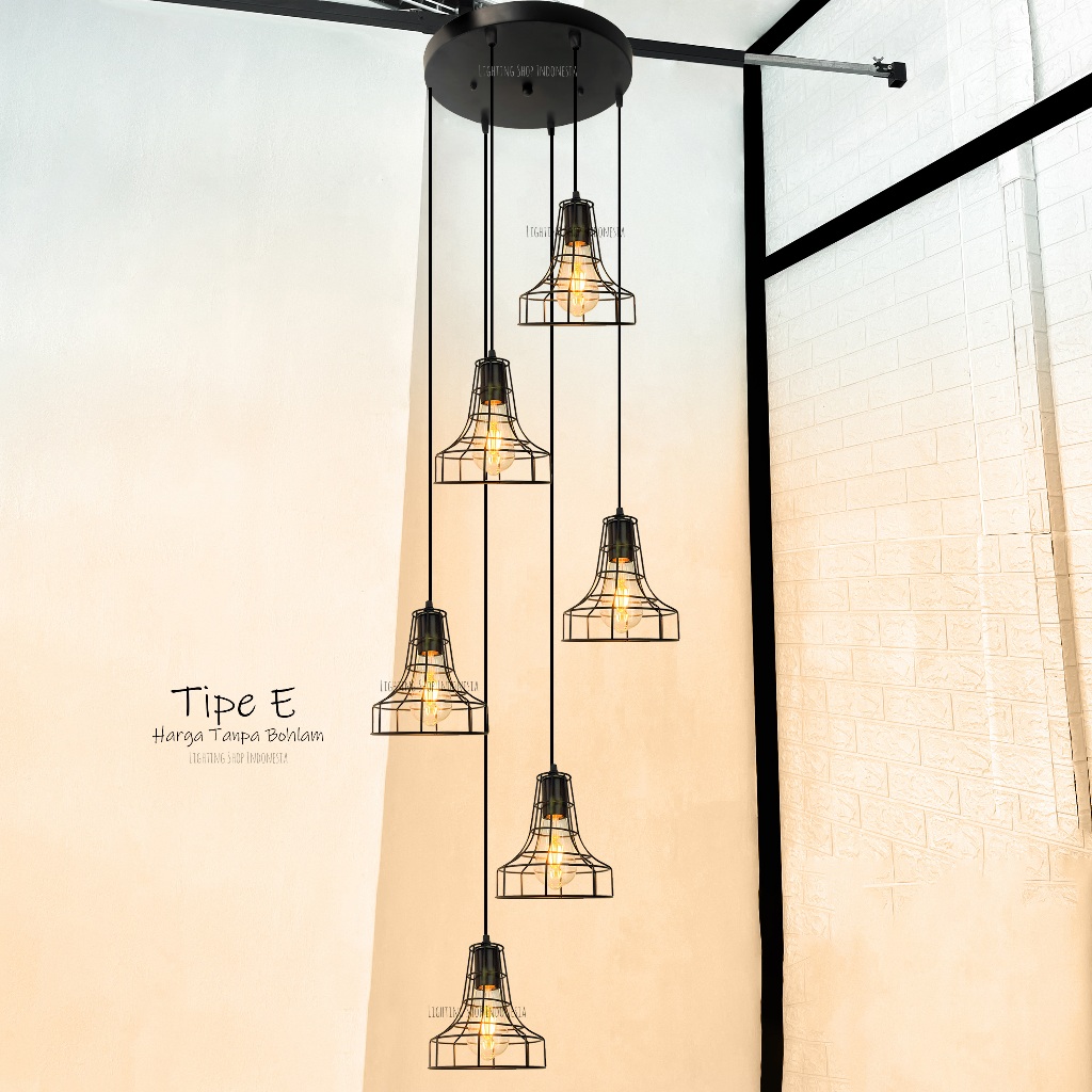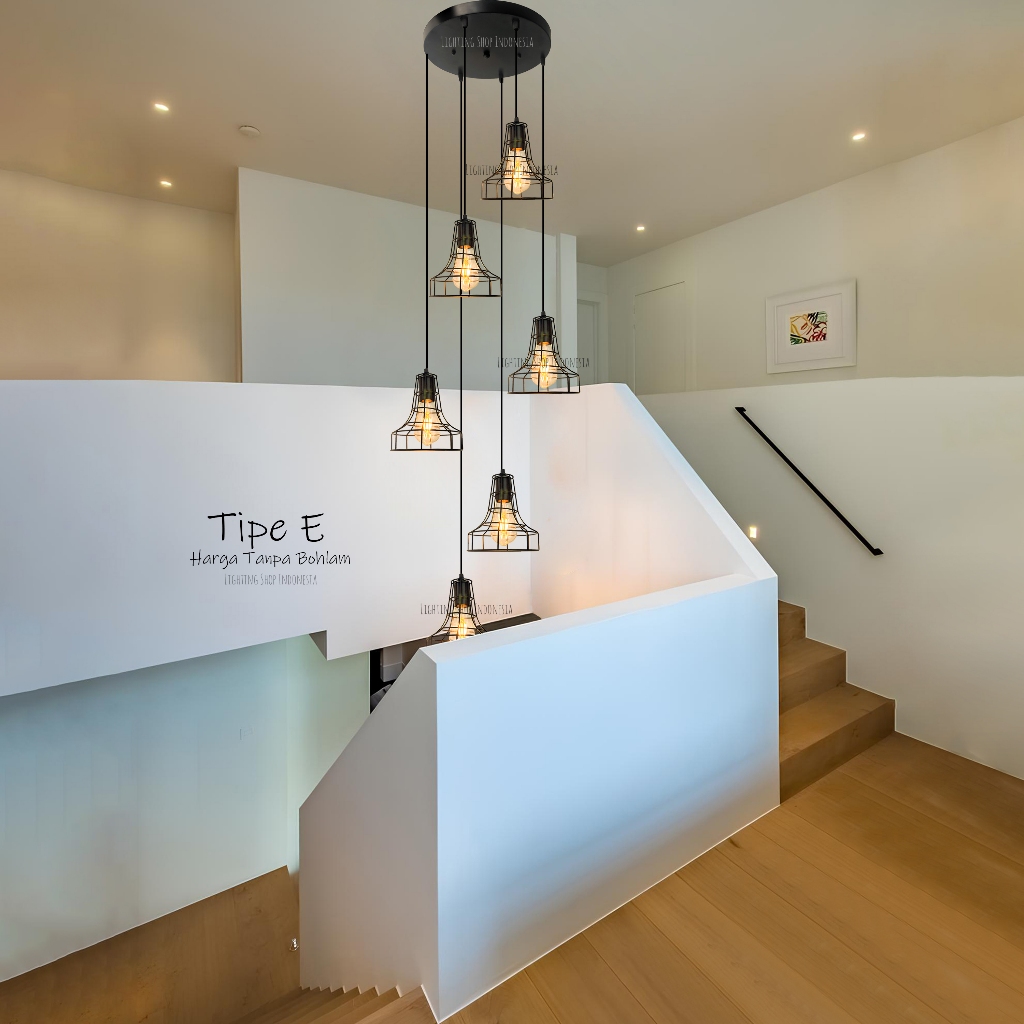 Lampu gantung void tangga minimalis 6in1 retro cafe vintage 6 cabang