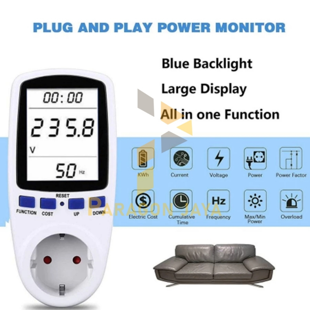 Watt Meter Stop Kontak Pengukur Daya Listrik Wattmeter KWH Volt Ampere Digital Power Meter AC Voltmeter Daya Energy Ukur
