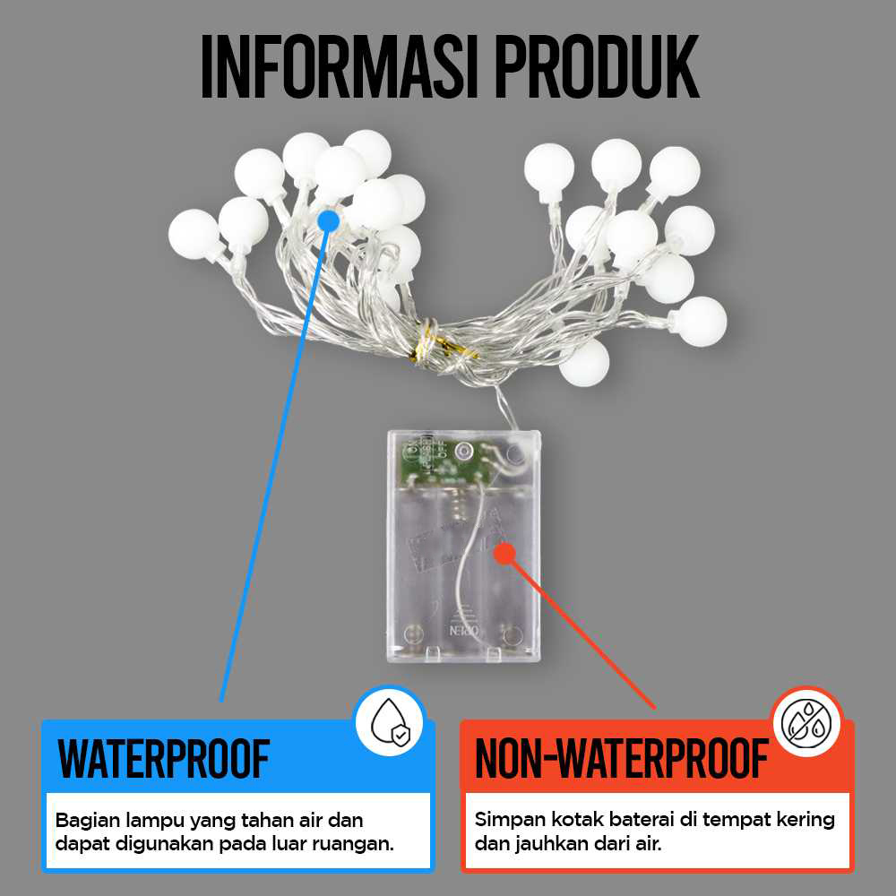 Lampu Hias Gantung Waterproof Bohlam Mini / Lampu Hias Camping Outdoor / Lampu Hias String Lights CHERRY BALL Warm White