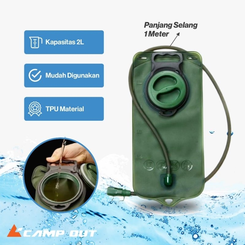 Water Bladder 2L Kantung Air Minum Outdoor - TPU Water Bag Running Sepeda Green