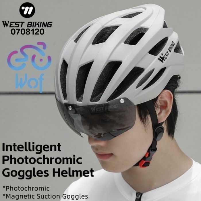 WEST BIKING 120 Photochromic Lens Helm Sepeda MTB Road Bike Cycling Helmet with Magnetic Goggles Men Women Safety Cap Bi