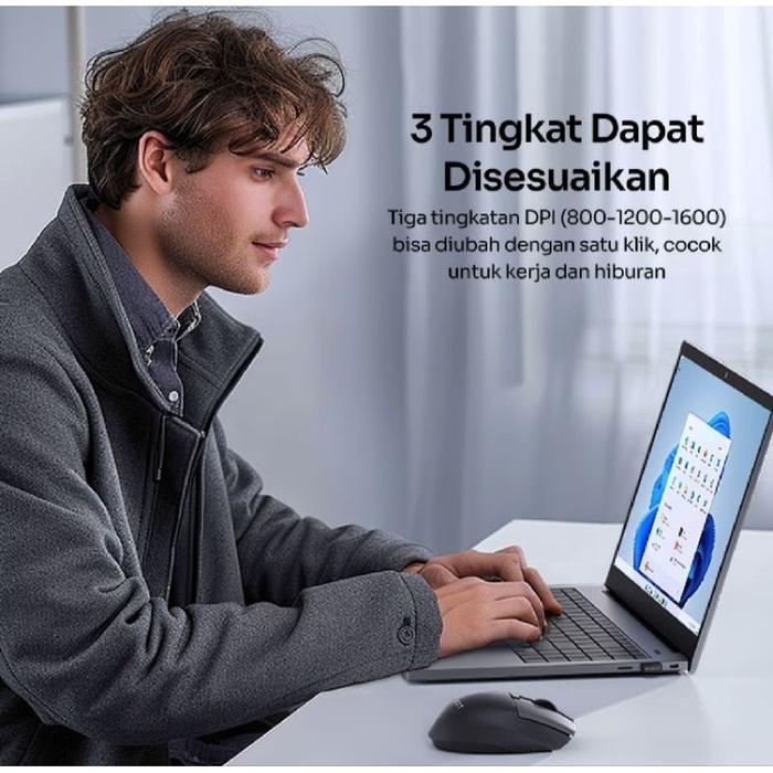 ROBOT Mouse Dual Mode Wireless + Bluetooth Silent Click 1600DPI - Hitam
