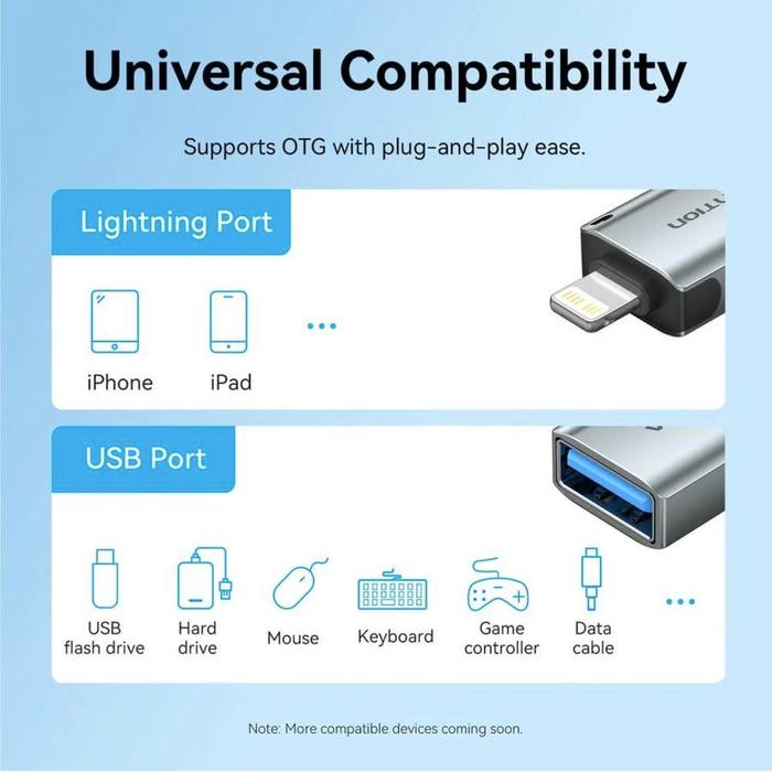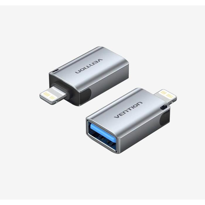 Vention USB-A Female to Lightning Male OTG Adapter PD Power Supply Adapter 0.15M Gray Aluminum Alloy Type - CUCH0