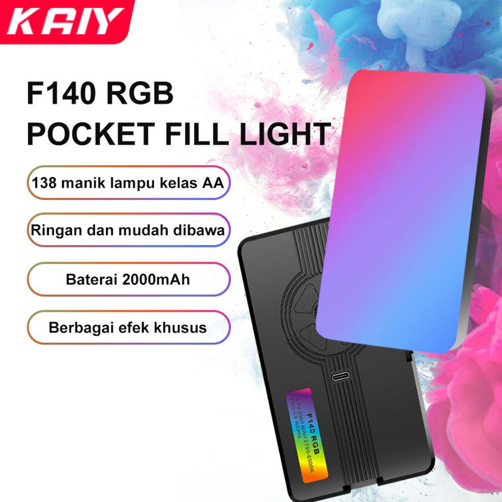 KAIY F140 RGB Lampu pocket Fill Light LED Video Portable Mini Lampu Fotografi Untuk Camera Handphone