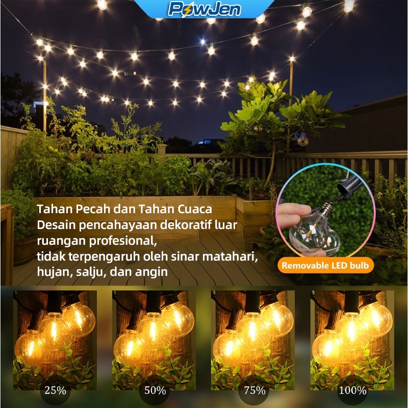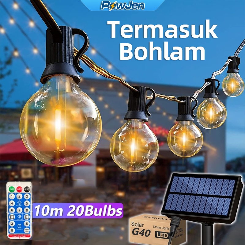20 Bohlam LED 10 Meter Tenaga Surya Panel Fitting Lampu Gantung Outdoor Matahari Tahan Air Cafe
