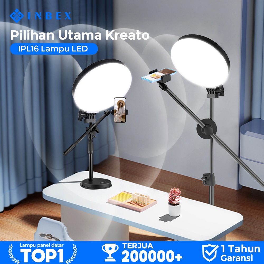 [15%OFF✨] INBEX IPL16 Ring Light Tripod konten kreator 12Inci / 8Inci Lampu 3 Warna Bulat Panel Besar Lampu Video Lives