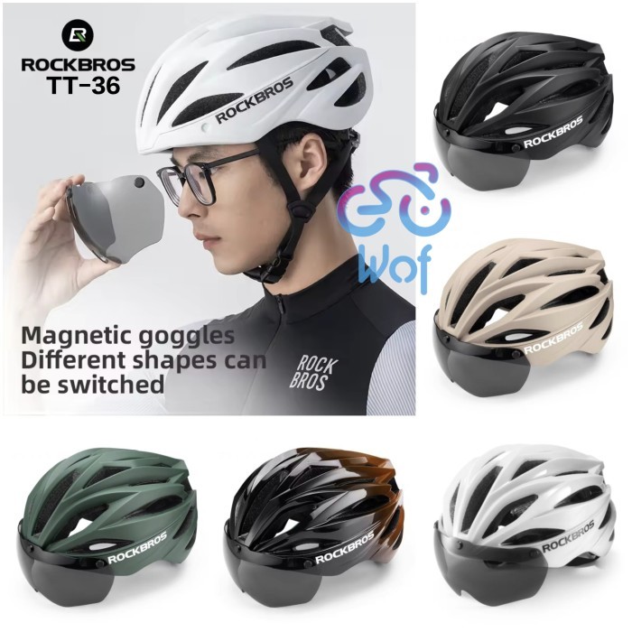 ROCKBROS TT-36 TT36 Helm Sepeda Lipat MTB Road Bike Cycling Helmet 58-62cm Adjustable Magnetic Goggles Integrated Bike S