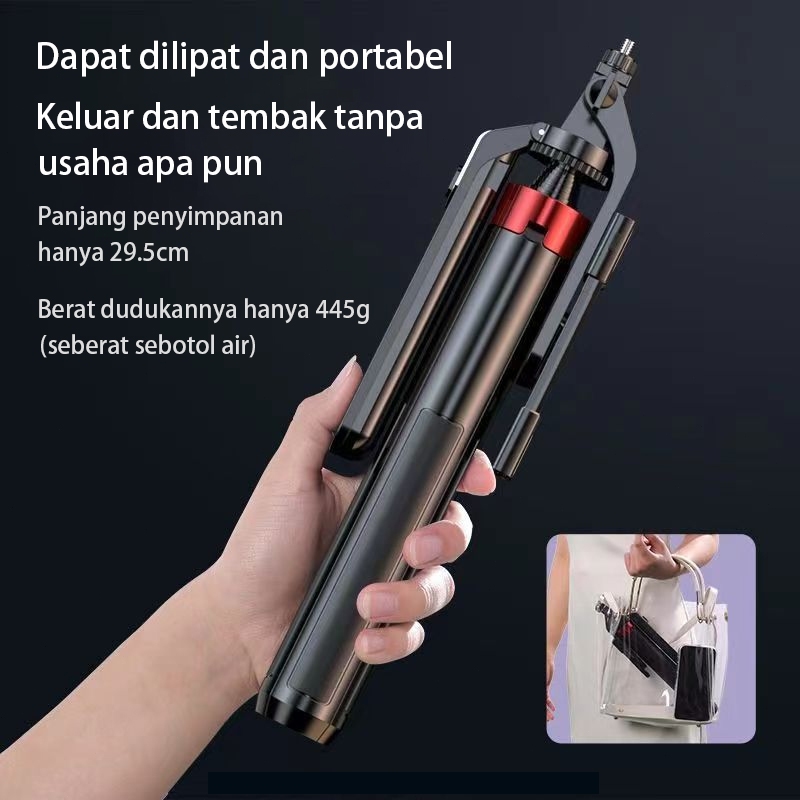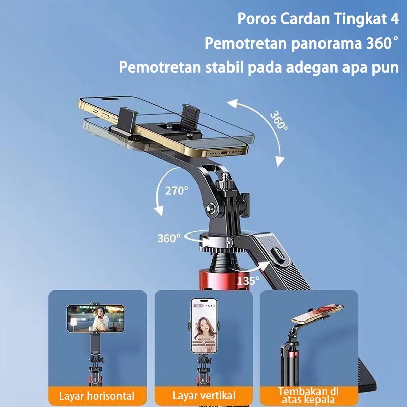 Akona 180CM Tongsis Tripod Handphone Bluetooth Remote Konten Kreator 360° Rotasi Tripod HP Anti Goyang 2 Lampu Dengan 1/
