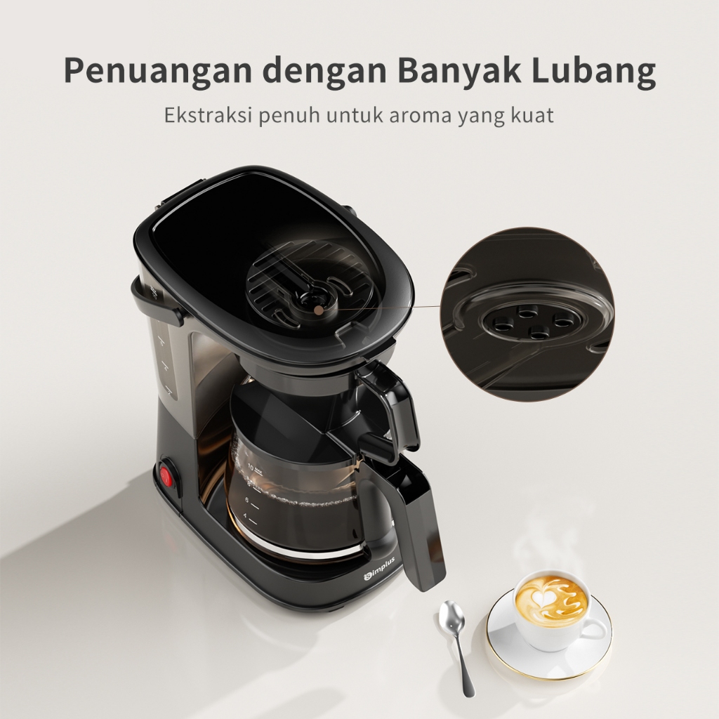 Simplus Mesin Kopi 1.25L Coffee Maker Filter Otomatis Penetesan dan Penuangan Untuk Kopi dan Teh