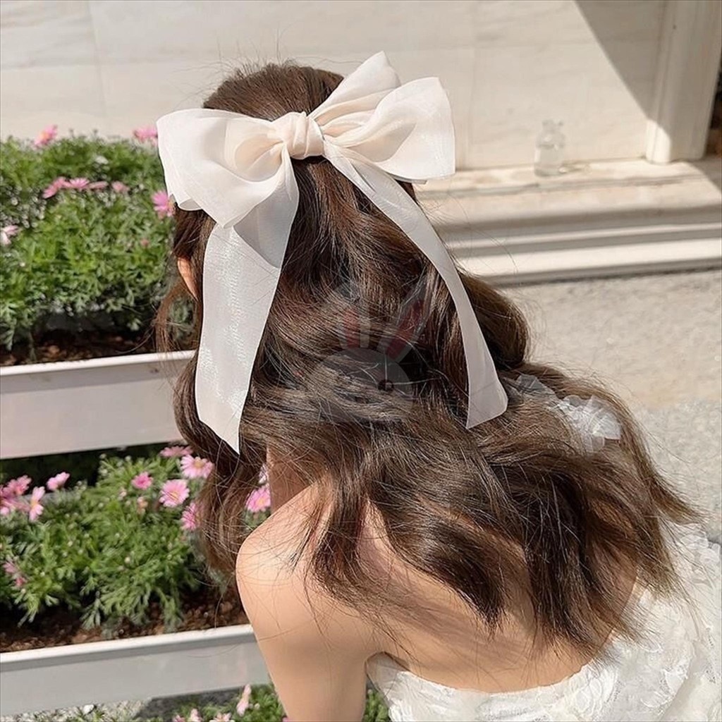 KIYOWO Jepit Rambut Pita Panjang Bahan Organza Besar Lurus Gaya Fashion Korea Import AR009