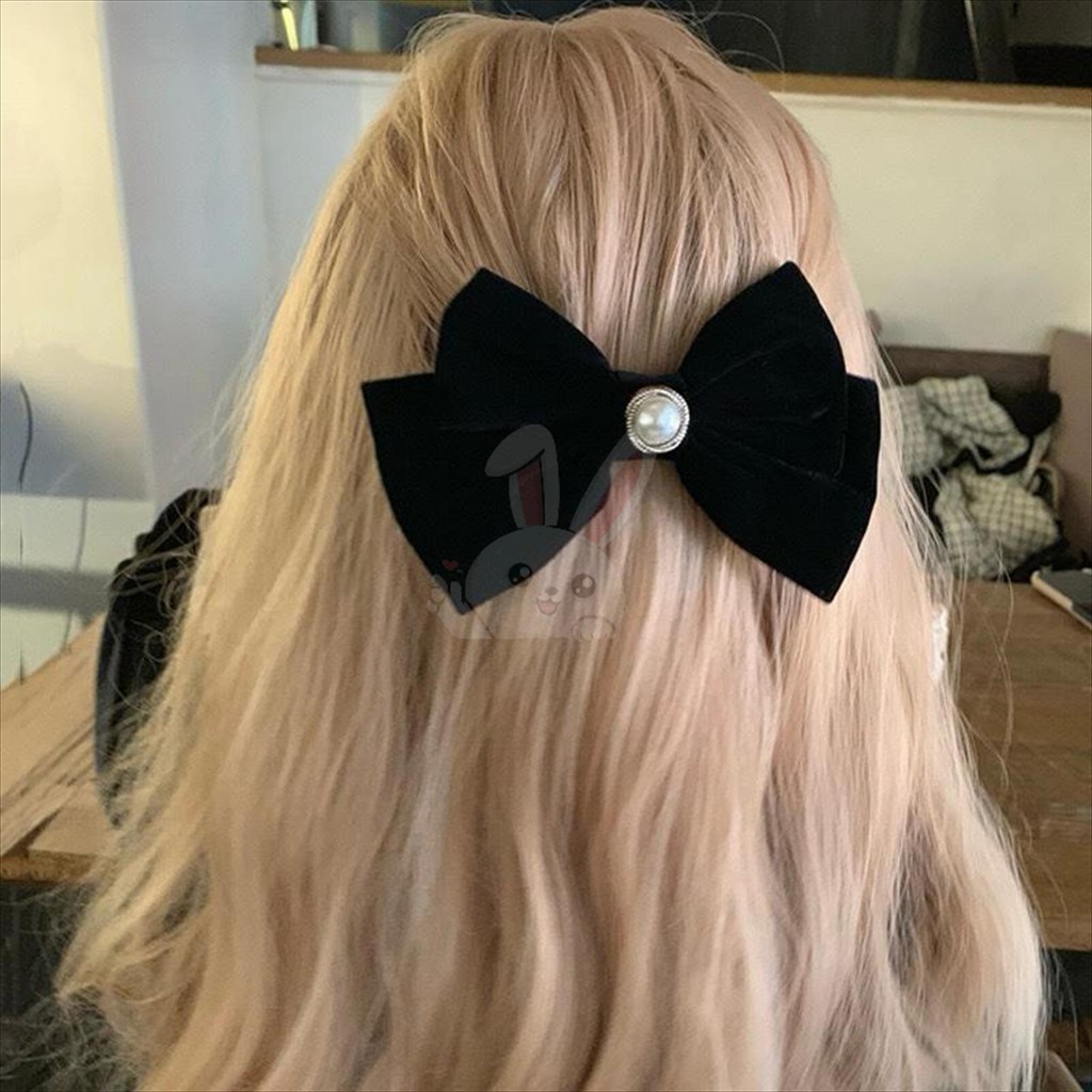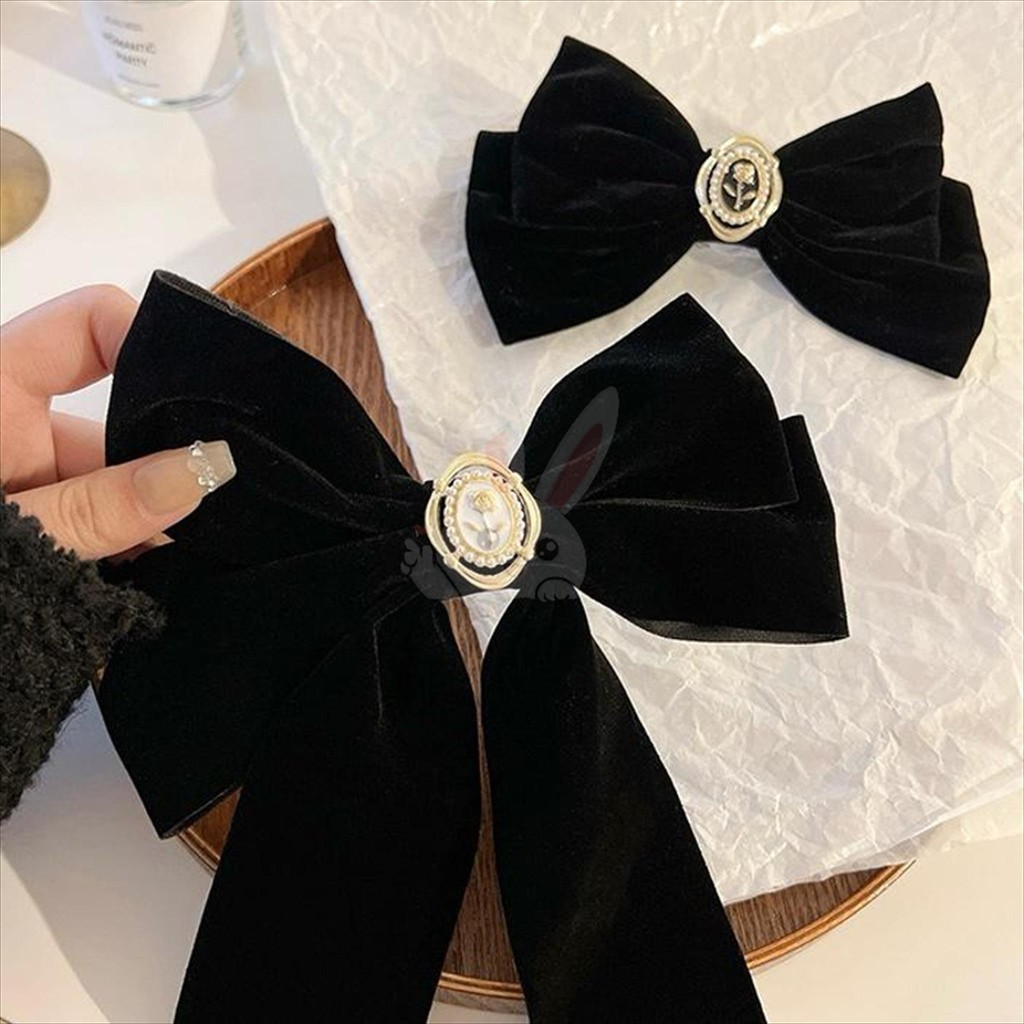 KIYOWO Jepit Rambut Pita Besar Panjang Hitam Bahan Suede Gaya Fashion Korea Import AR120