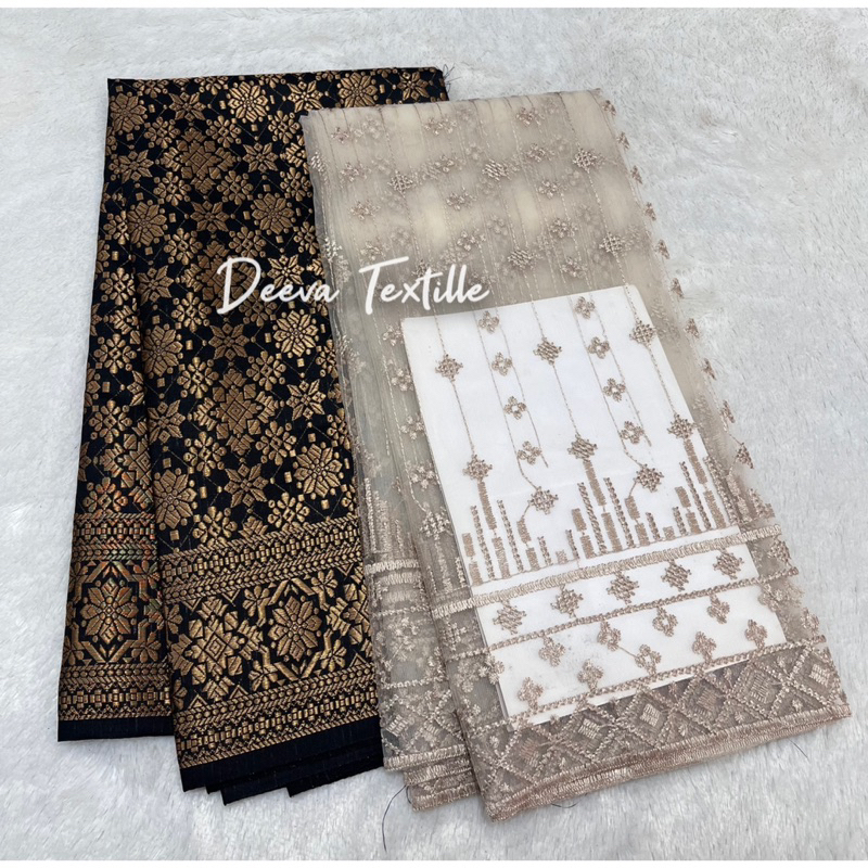 Set/Paket Kain Tille Etnic & Songket / kain seragam Tile Sapto & Songket Semi Palembang