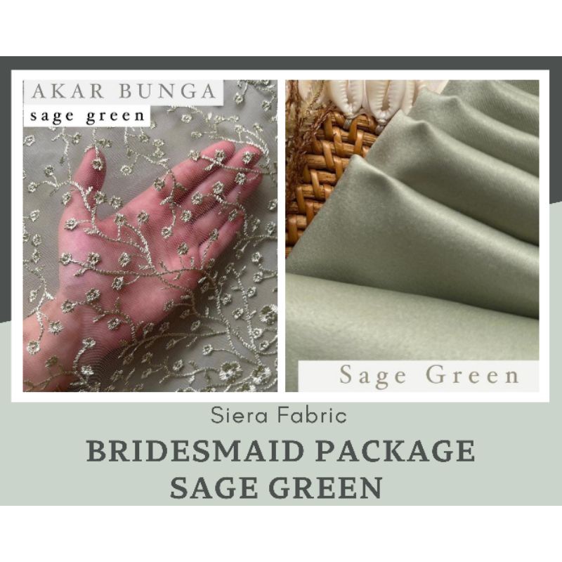 Paket Lengkap Kain Bridesmaid Premium / Kain Satin Velvet Premium + Kain Brukat Tile - Sage Green