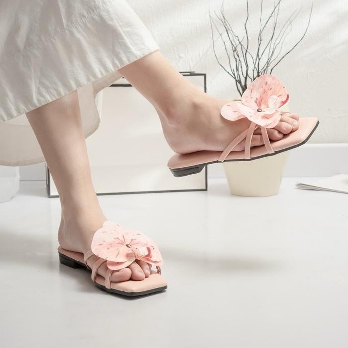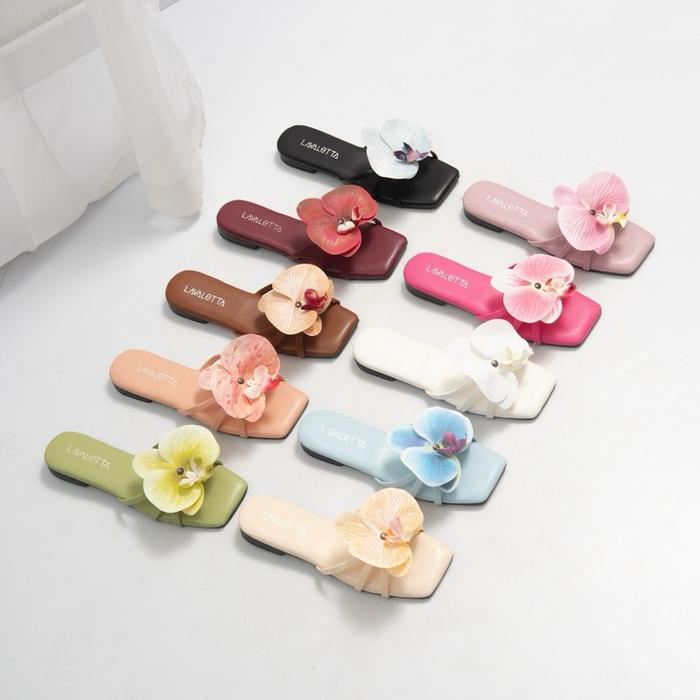 [Star]Lavaletta_id • Anastasia Orchid Flat Sandal Teplek Wanita Bunga Anggrek Hak 1cm - Hitam, 37