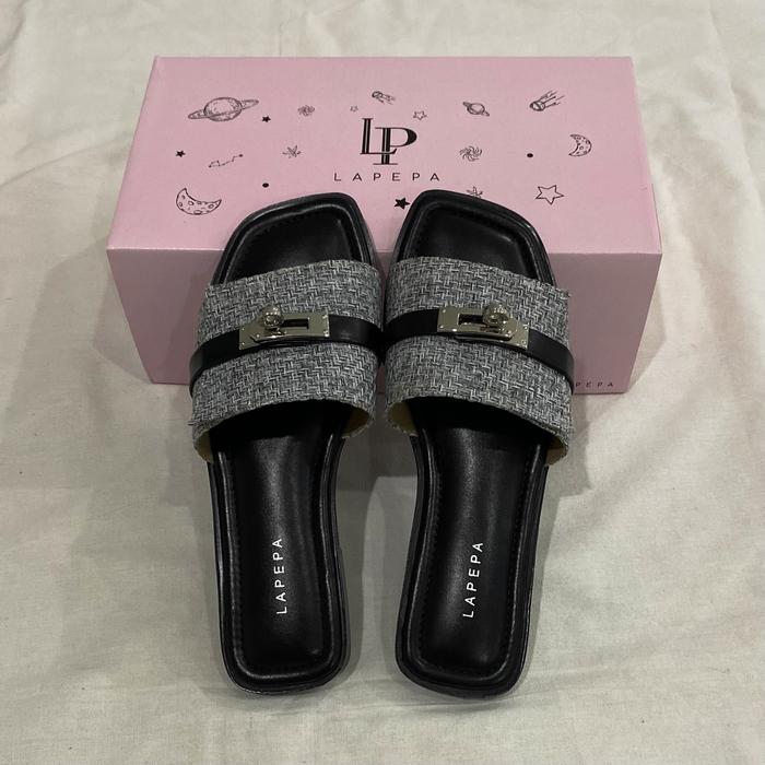 [Star]LAPEPA STORE - MARTHA Grey Sandal Teplek Wanita | sendal flat cewek klasik kekinian warna abu-abu terbaru official