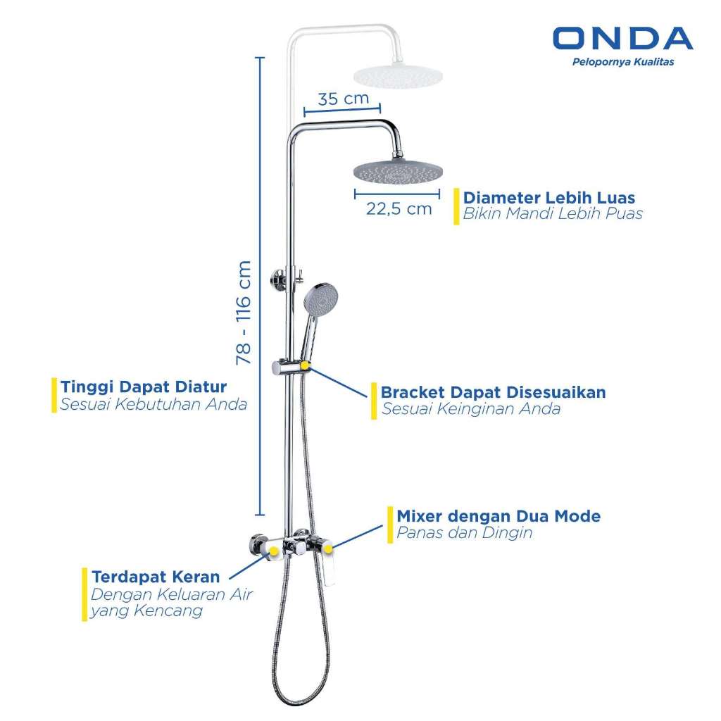 [Mall] SHOWER KAMAR MANDI PANAS DINGIN ONDA PAKET HEMAT RAIN SHOWER TIANG RS RENEW + FREE RAK SHOWER KAMAR MANDI SET
