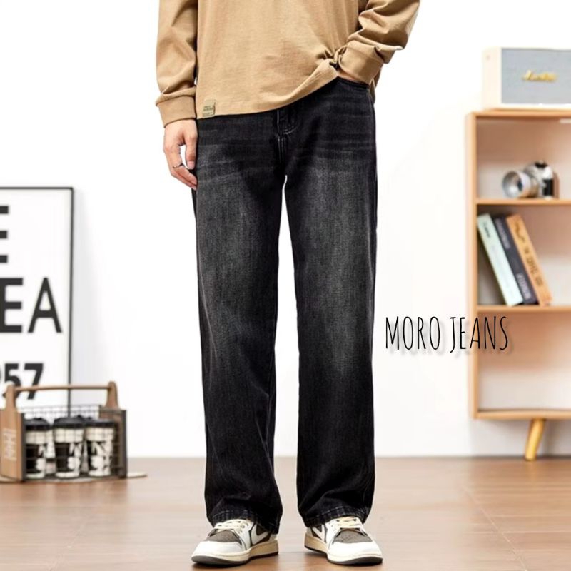 celana jeans pria baggy pants korean style oversize loose blue and black snow jeans straight kulot panjang pria