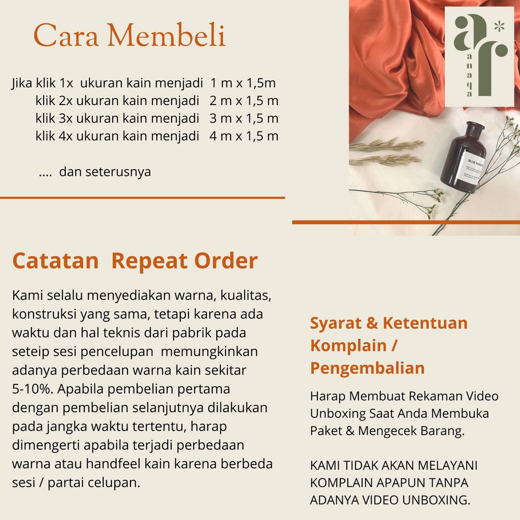 Rose Gold, Rose Taupe, Purple Lavender, Mauve, Broken White, Nude, Latte, Coffee, Mocca, Sienna, Milo, Hazelnut, Sea Salt, Hijau Wardah, Mint, Sage Green, Laurel, Light Khaki, Lime, Olive, Army Green, Bottle Green, Black, Navy, Dark Denim, Denim Blue, Powder Blue, Baby Blue, Persian Blue, Silver Blue, Soft Denim, Silver Gray, Ash Gray, Putih Bersih, Soft Lilac, Lilac, Blue Emerald, Tosca, Peach, Light Pink, Fuschia, Burgundy, Maroon, Terracotta, Mahogany, Tangerine, Honey Gold, Violet