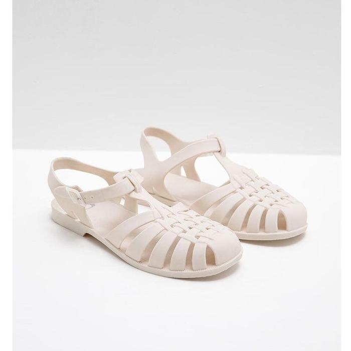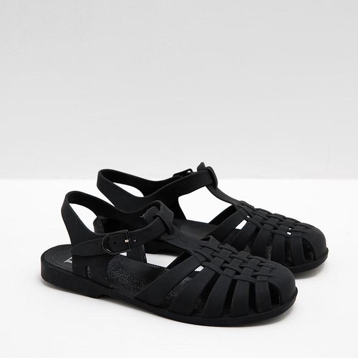 [Star]Berrybenka - Sepatu Sandal Tali Wanita Sofia Molly Jelly Sandal Sendal Round Toe Open Toe Karet - Black, 36