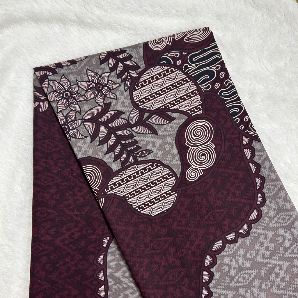 Kain Batik Katun Premium Motif Parang Bunga Burgundy ( Per Meter )