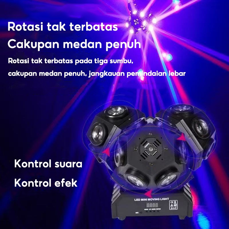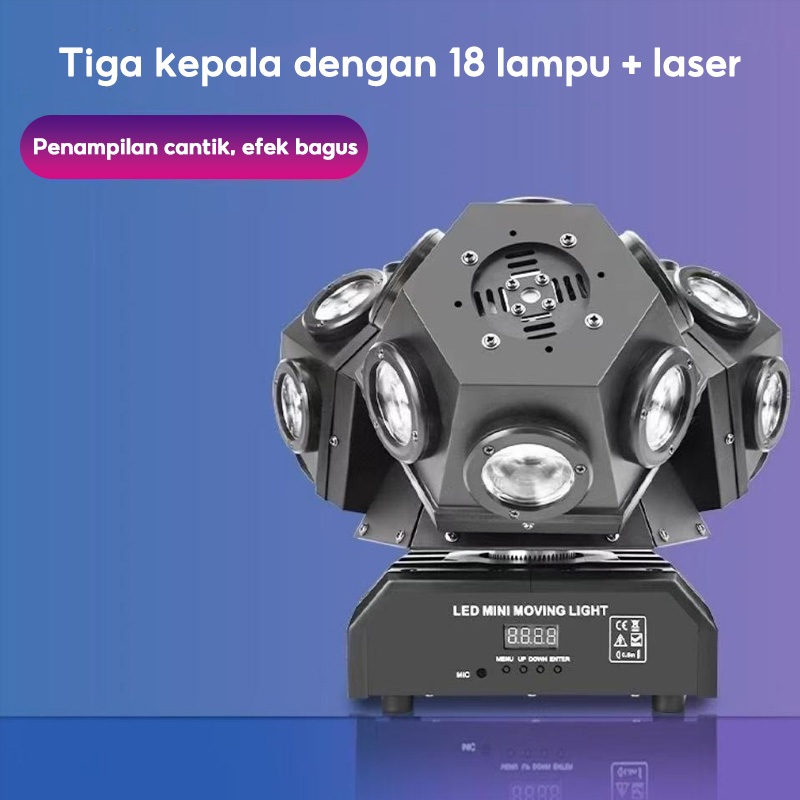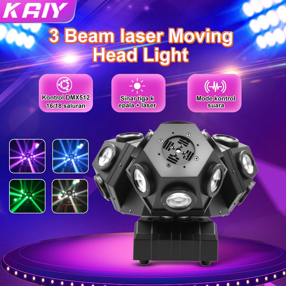【READY】KAIY Lampu Panggung Moving Ball 220W 4in1 Laser Beam light Disco Putar 18 Bola Led RGBW Audio control, DMX