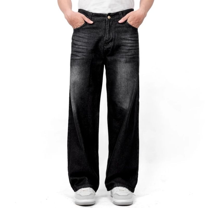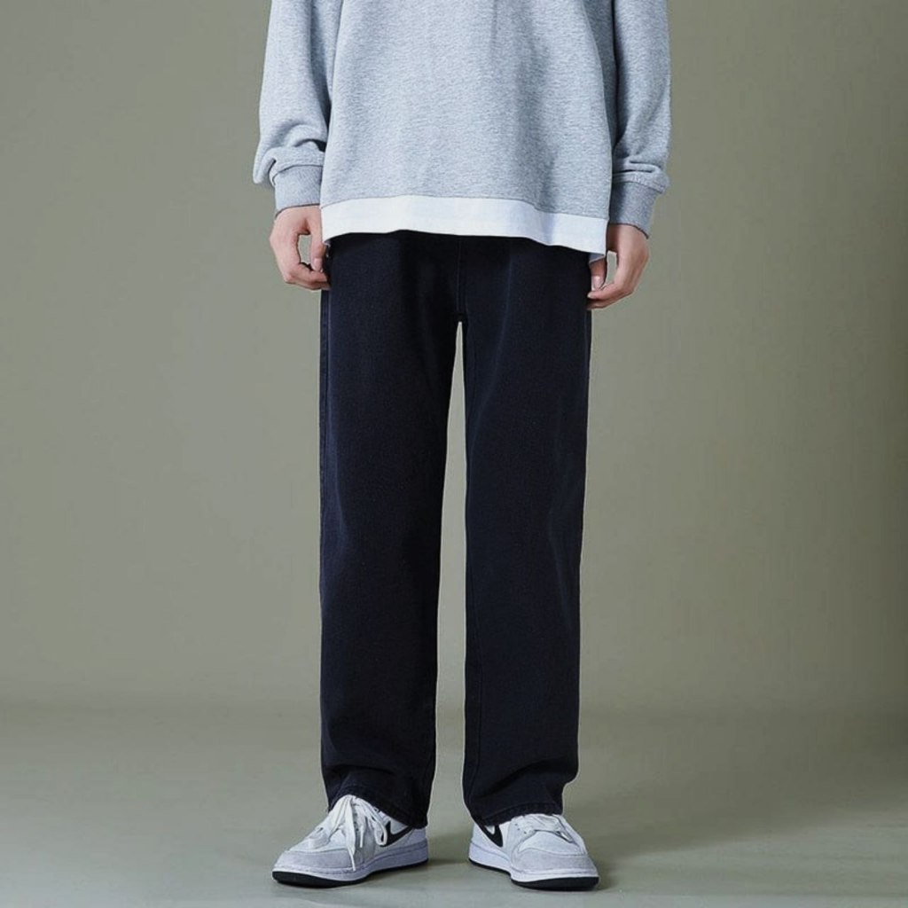 Celana Jeans Pria Baggy Pants Korean Style Oversize Straight Loose Blue Reguler Fit